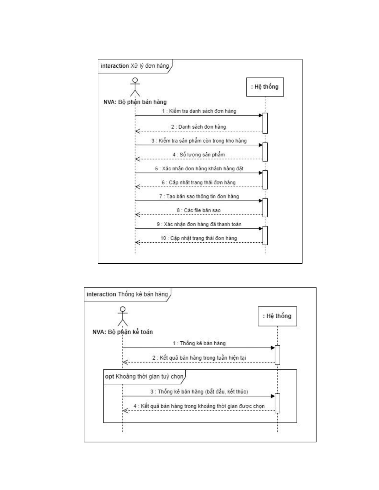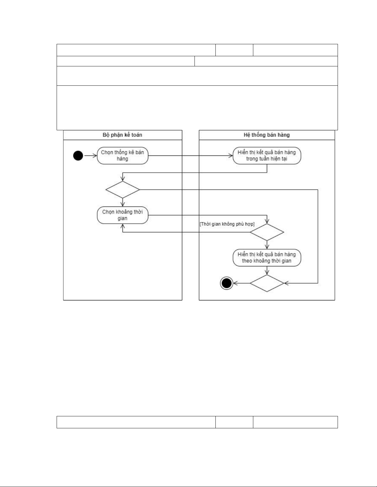 − Nội dung: Bộ phận kế toán thực hiện thống kê bán hàng. Hệ thống hiển thị kết quả bán hàng trong tuần