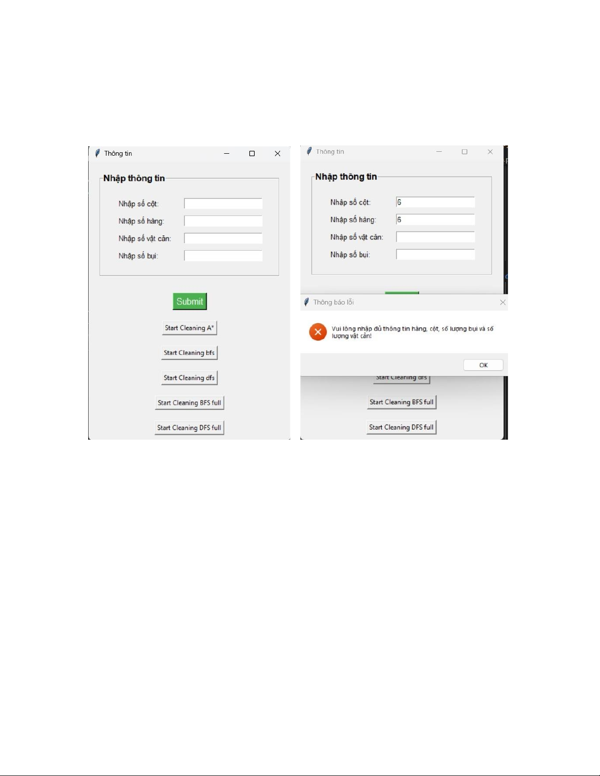 máy sẽ tiến hành đi toàn bộ căn phòng, nếu vị trí đó bẩn thì sẽ hút bụi ( bài toán có sự kiện ngẫu nhiên) Giao diện người dùng: