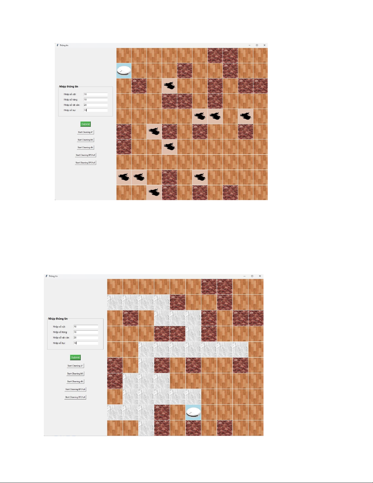 trường với số lượng hàng, cột, vật cản, và điểm bụi tùy ý. Điều này cho phép kiểm
