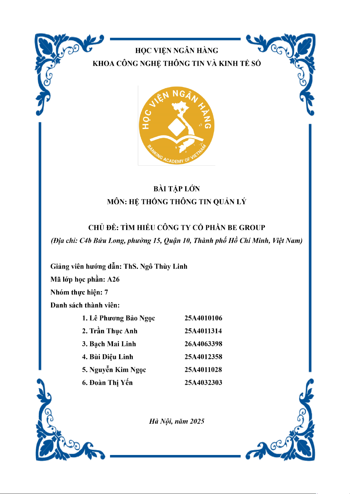 ty cổ phần Be Group” là trung thực và không sao chép từ bất kỳ bài tập của nhóm khác.