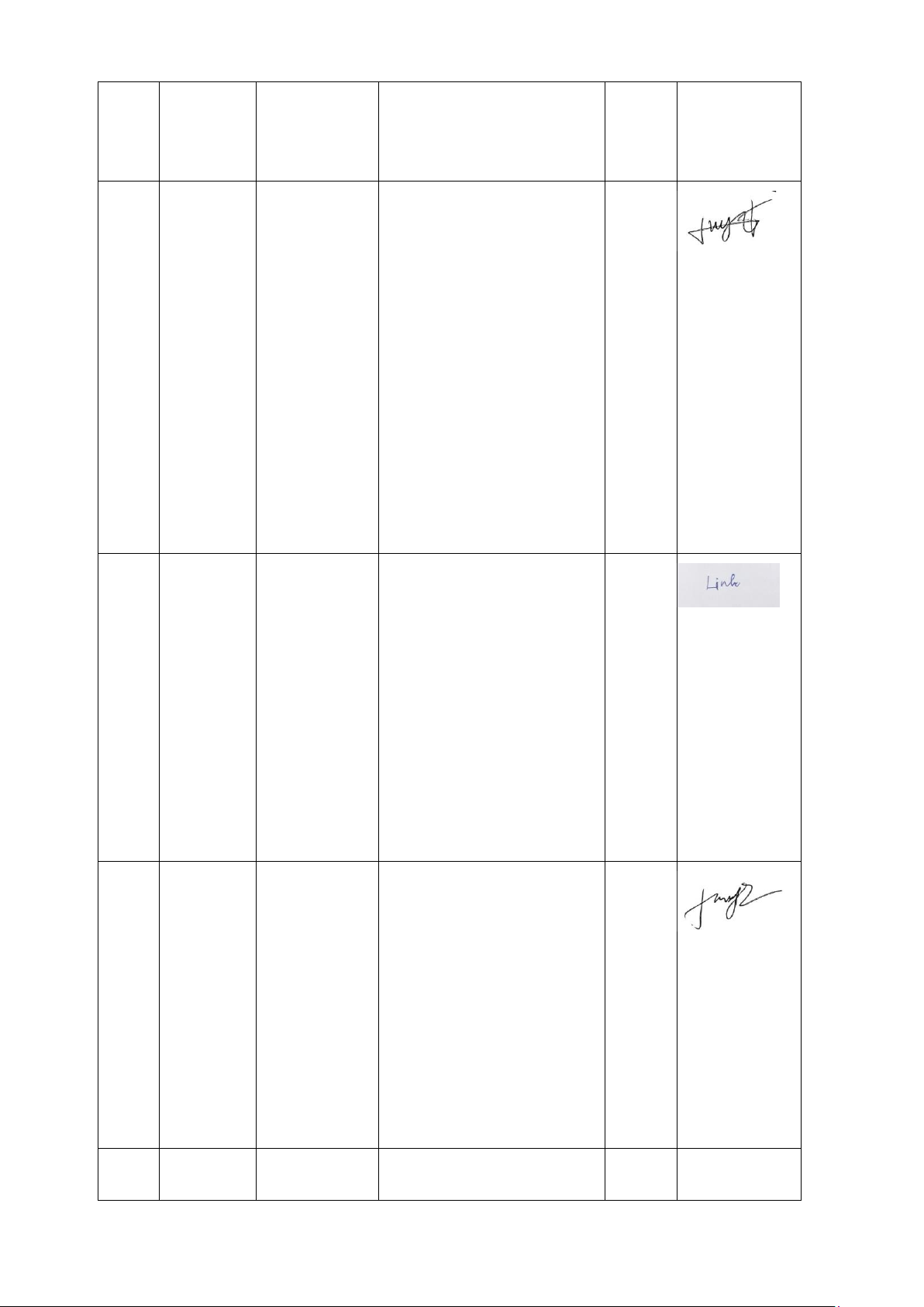 BẢNG PHÂN CÔNG CÔNG VIỆC Tỉ lệ STT Họ tên MSV Nhiệm vụ hoàn Chữ ký thành - Phân chia công việc cho các thành viên trong nhóm; - Phân tích mô hình 5 lực lượng cạnh tranh Nguyễn - Tham gia xác định chiến lược cạnh tranh Đăng Thu phù hợp cho VinFast 1 Huyền 24A4011864 20% - Tham gia vẽ mô hình (Nhóm quy trình nghiệp vụ cũ trưởng) và mô hình quy trình