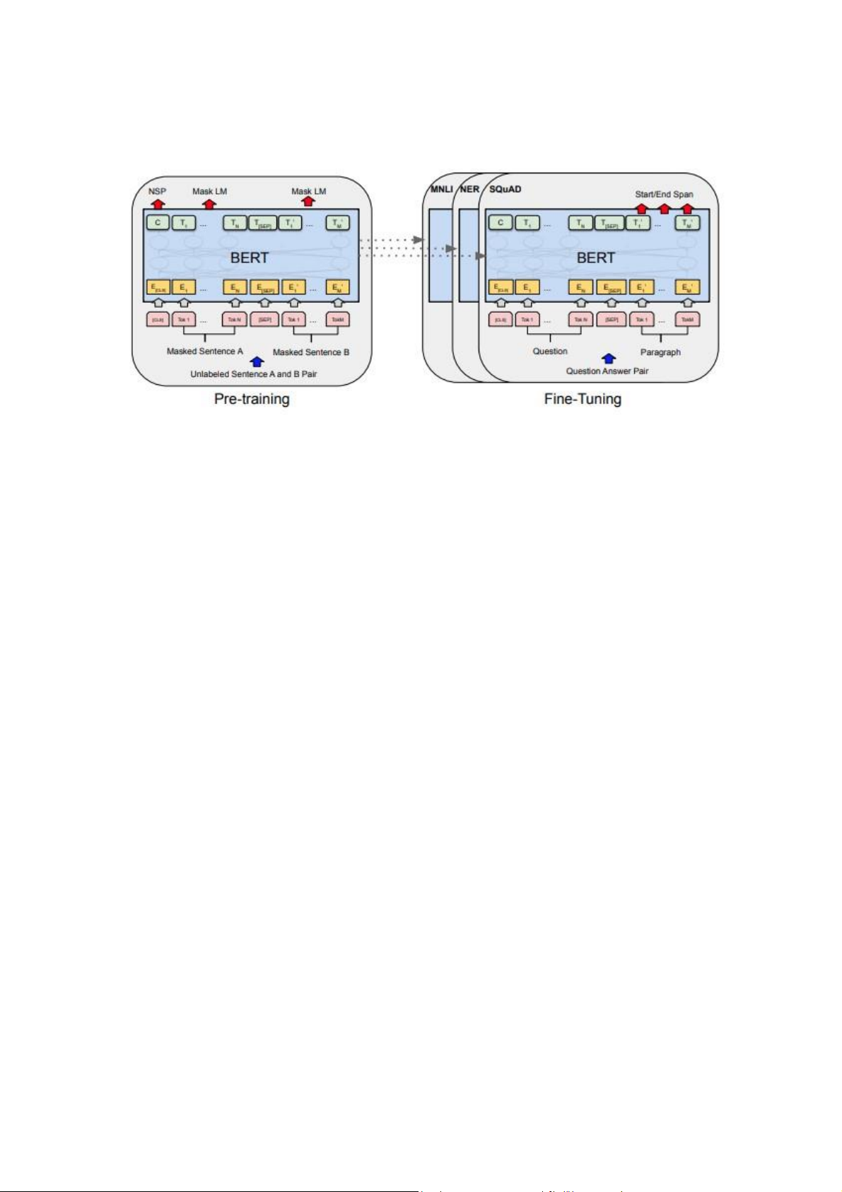 Hình 2. Tổng quan các bước pre-training và fine-tuning cho BERT Trong báo