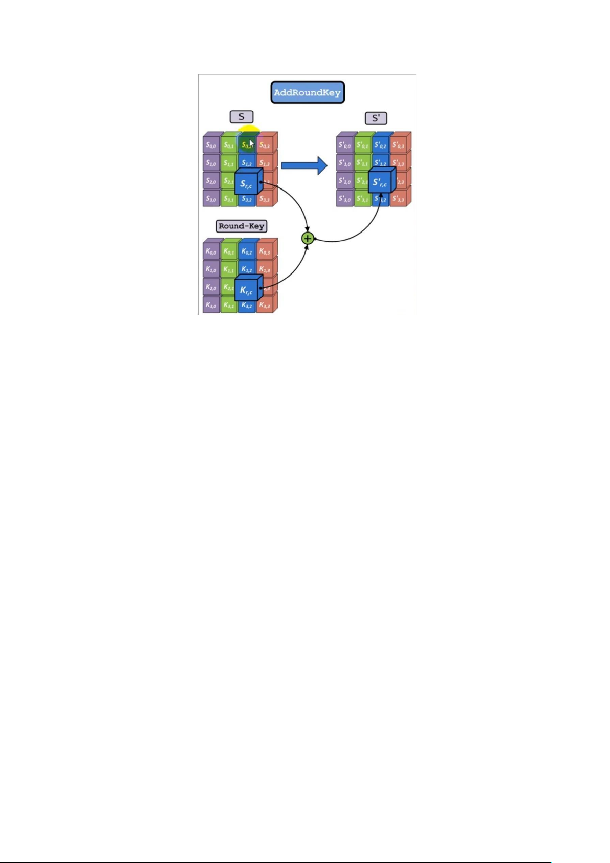 - AddRoundKey : Một khóa vòng ược cộng vào bảng trạng thái bằng 1 thao tác XOR bit