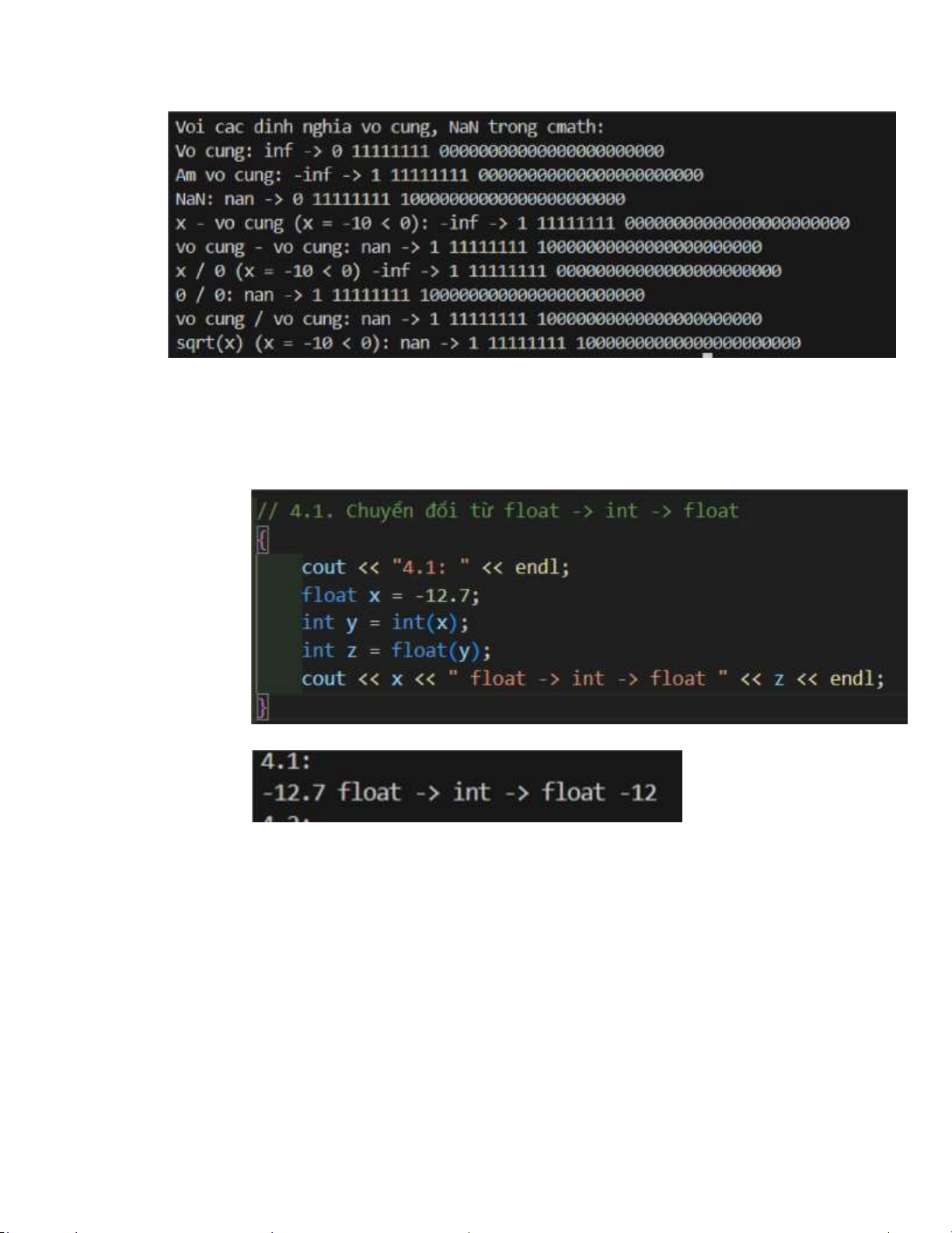 - Ở các test case 4, 5: inf, nan tương ứng với ∞ và NaN. Hai giá trị này là hai giá trị