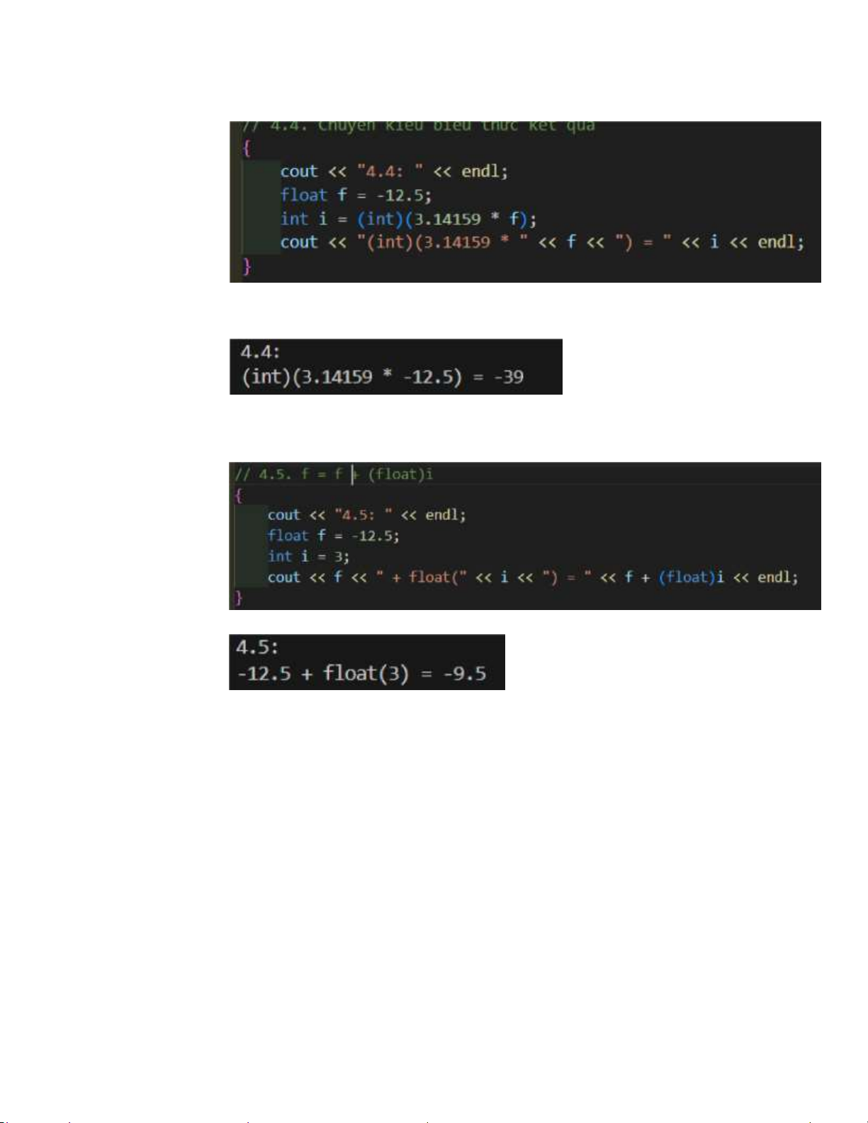 quả của biểu thức i=(int)(3.14159 * f) với f = -12.5 là -39. 10 lOMoAR cPSD| 59994889
