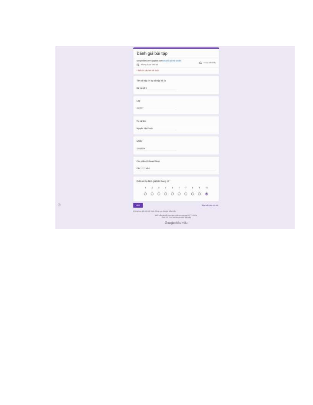 Điểm tự đánh giá: 10/10 Bài Đặc điểm Mức độ Ghi chú hoàn thành 1 Viết chương trình 100% -