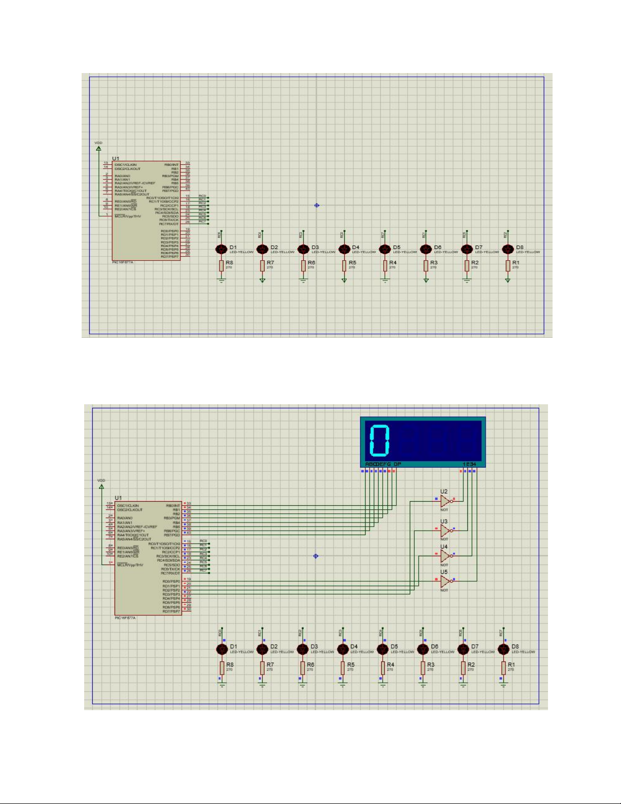 mức 0, sơ đồ kết nối như bảng. Viết lại chương trình như bài 1.7. D1 D2 D3 D4 D5 D6 D7 D8 RC6 RC4 RC3 RC0 RC7 RC1 RC5 RC2 #include <16F877A.h>