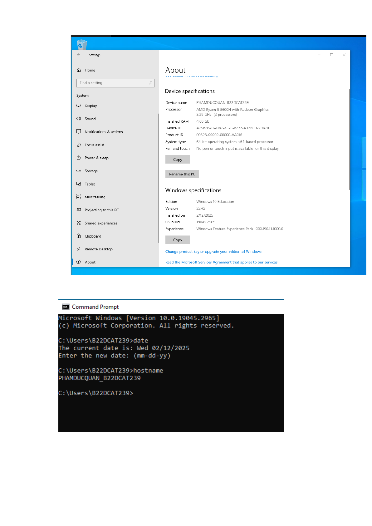 Hình 8 – Giao diện windowns10 sau khi đã được cài đặt và đổi tên máy