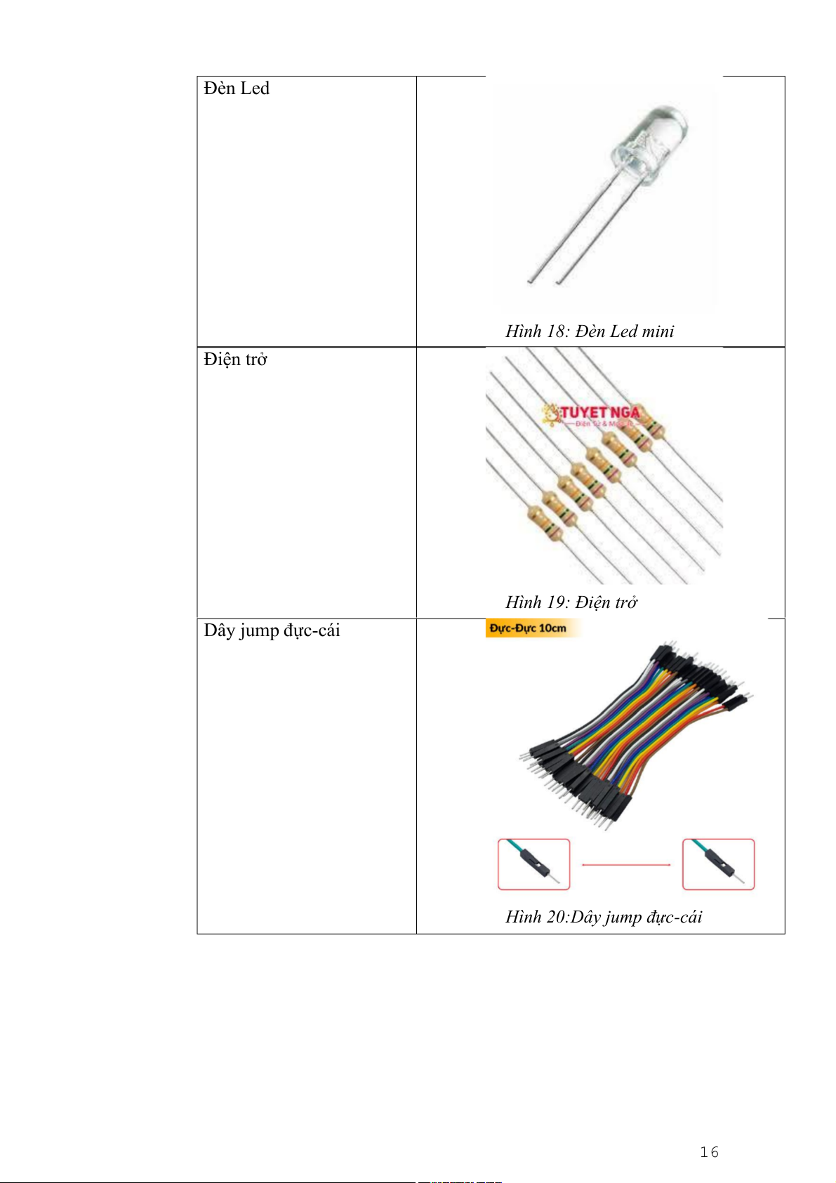 Hình 17: Cảm biến Max30120 15 Đèn Led Hình 18: Đèn Led mini Điện trở Hình 19: Điện trở Dây jump đực-cái