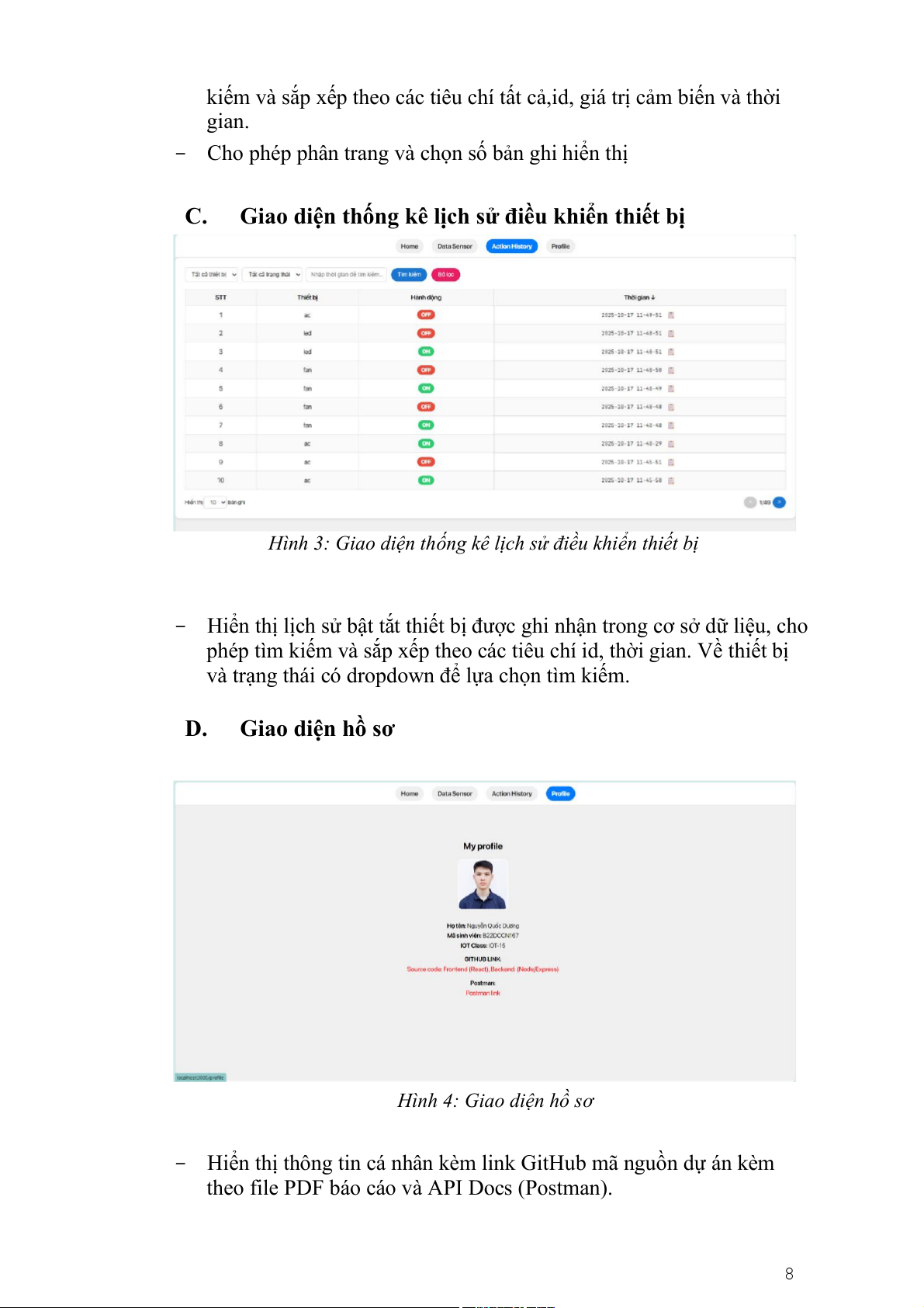 Giao diện thống kê lịch sử điều khiển thiết bị .. 8 D.