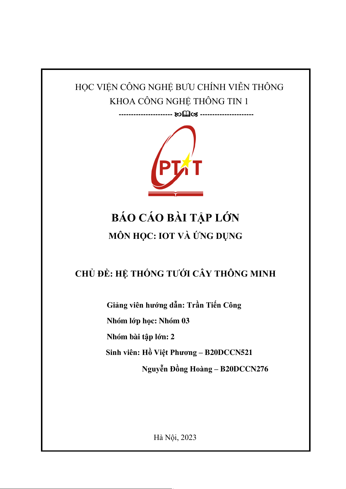 Nguyễn Đồng Hoàng – B20DCCN276 Hà Nội, 2023