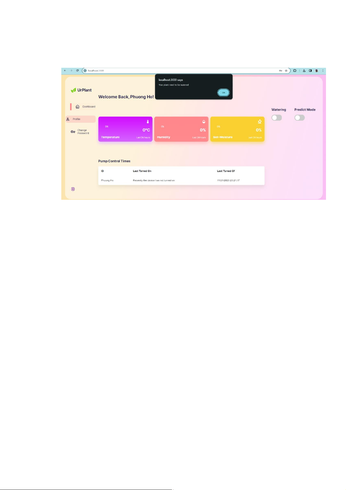 - Hệ thống cũng thông báo cho người dùng lúc nào cây cần tưới nước và khi