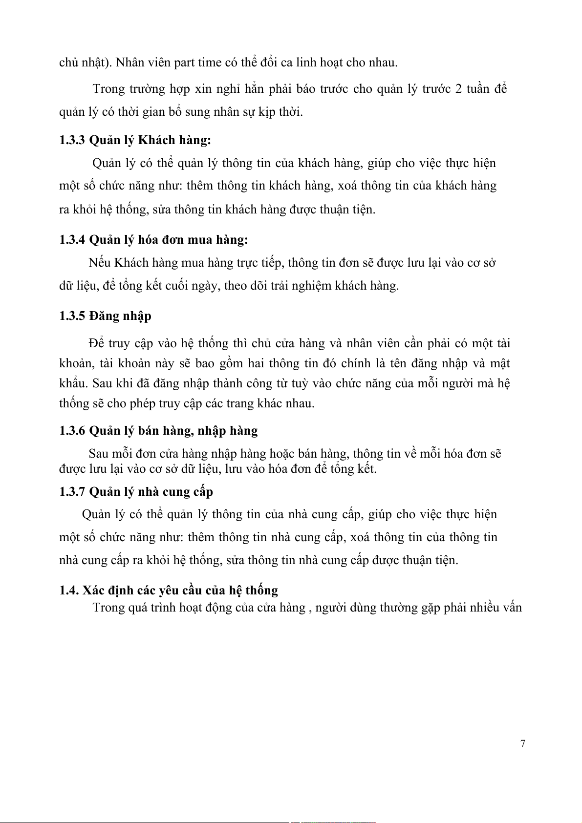 Hệ thống đảm bảo cung cấp đầy đủ thông tin chính xác yêu cầu của nhân viên và cửa hàng trưởng. 8 1.4.2.4