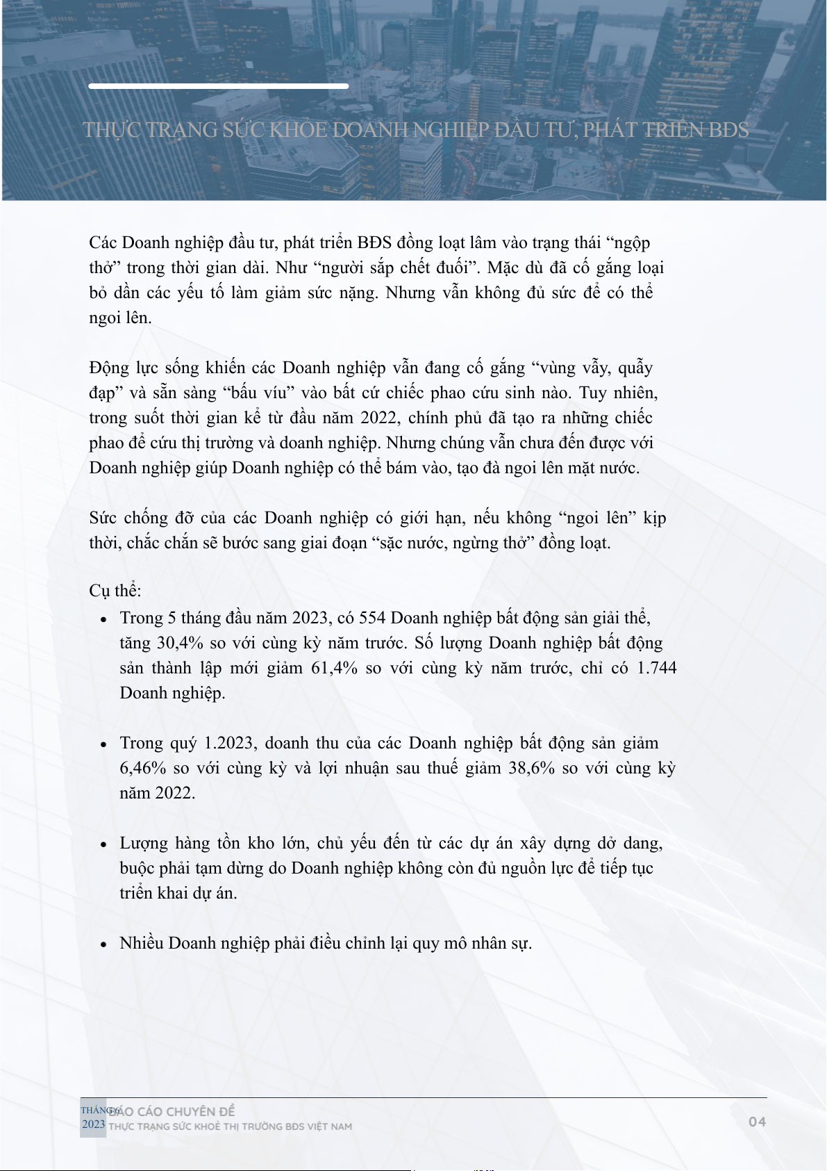 THỰC TRẠNG SỨC KHỎE DOANH NGHIỆP ĐẦU TƯ, PHÁT TRIỂN BĐS