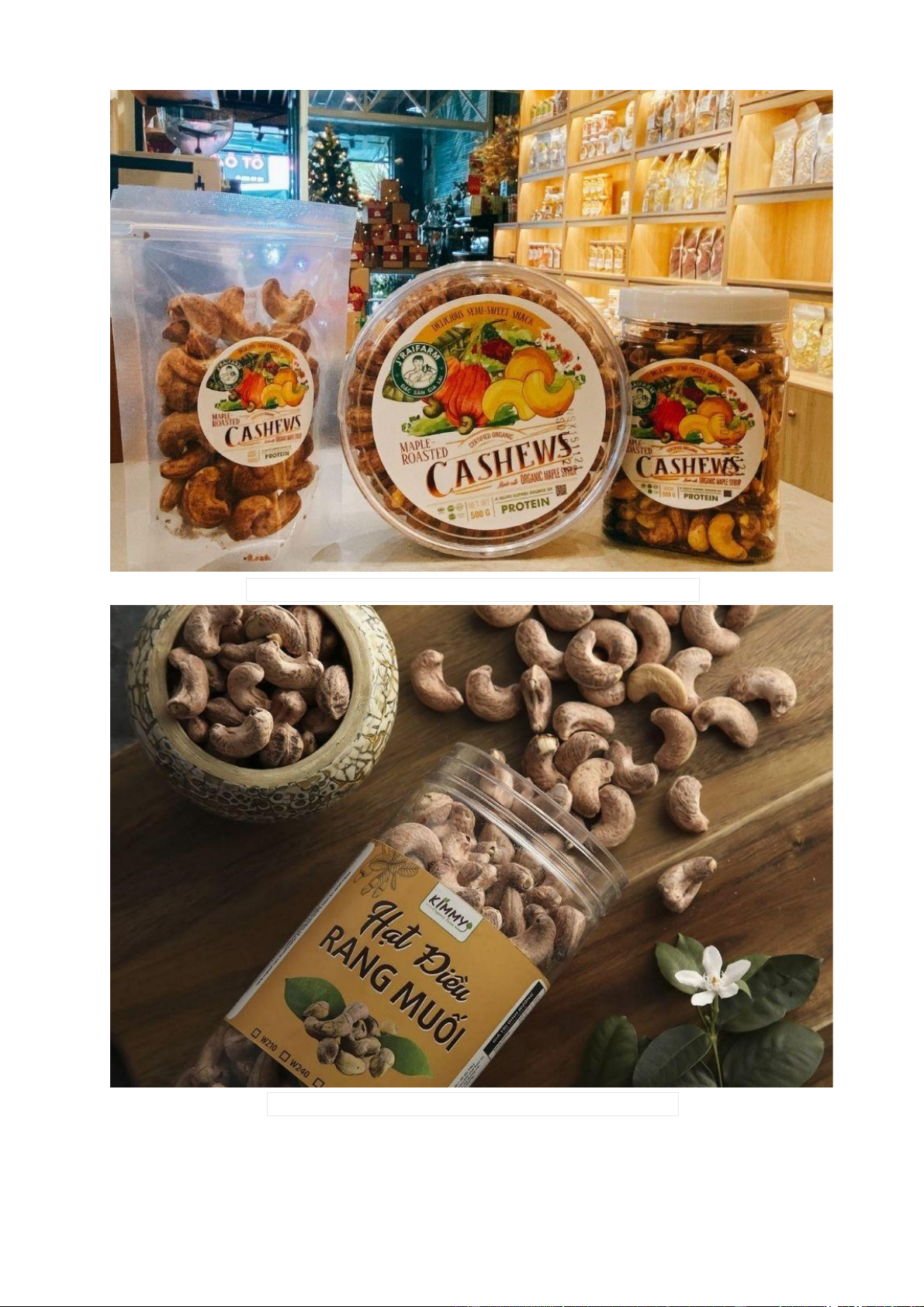 khẩu các sản phẩm được chế biến từ hạt điều.