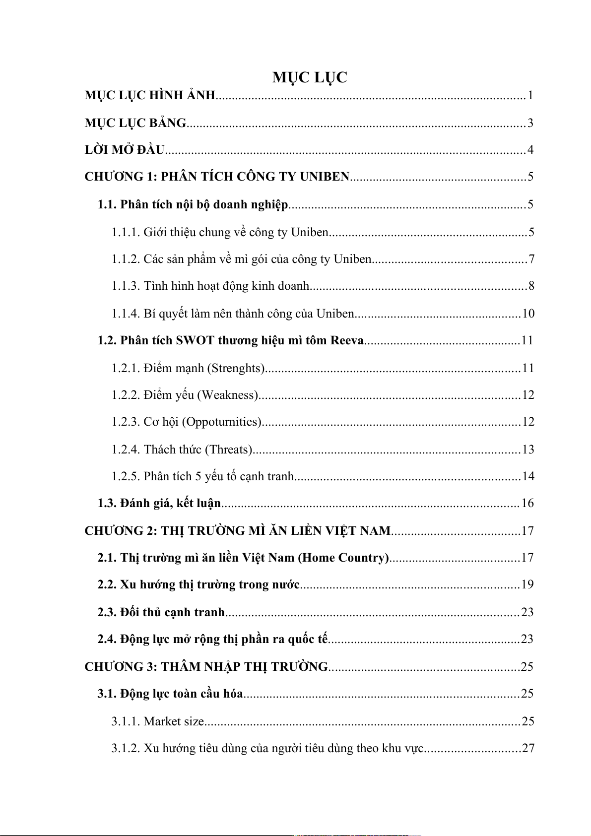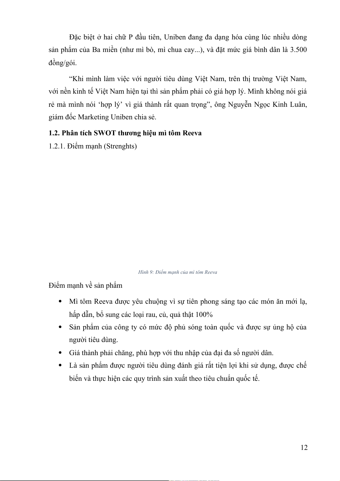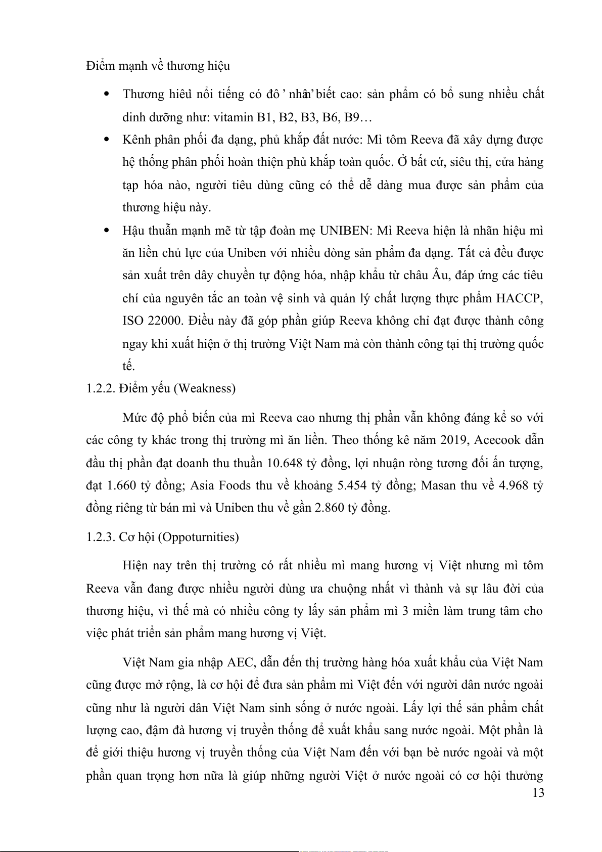 1.2. Phân tích SWOT thương hiệu mì tôm Reeva................................................11