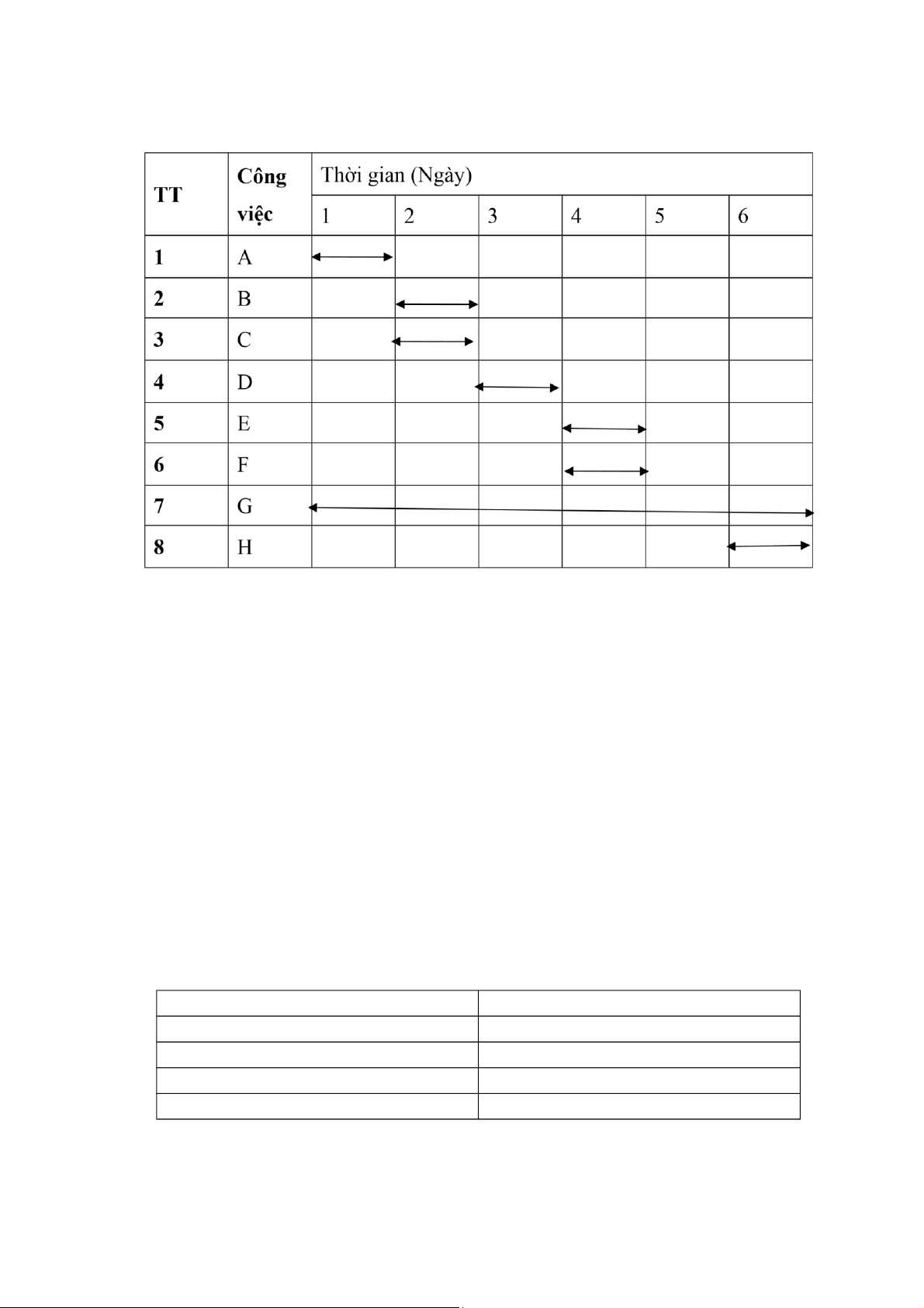 • Các công việc được thực hiện bảng phân bố thời gian thực hiện công.