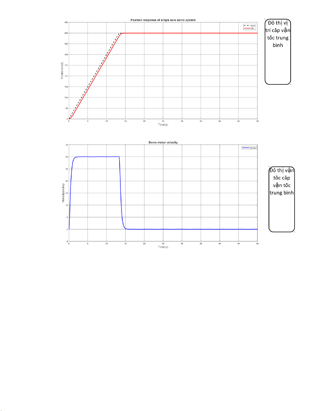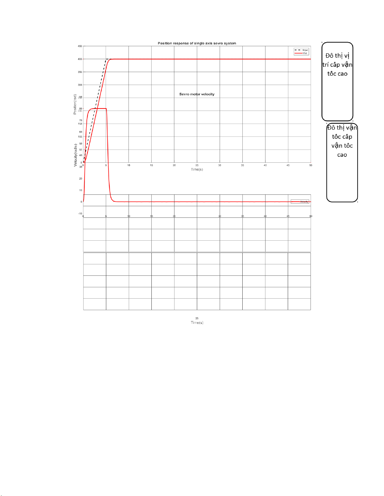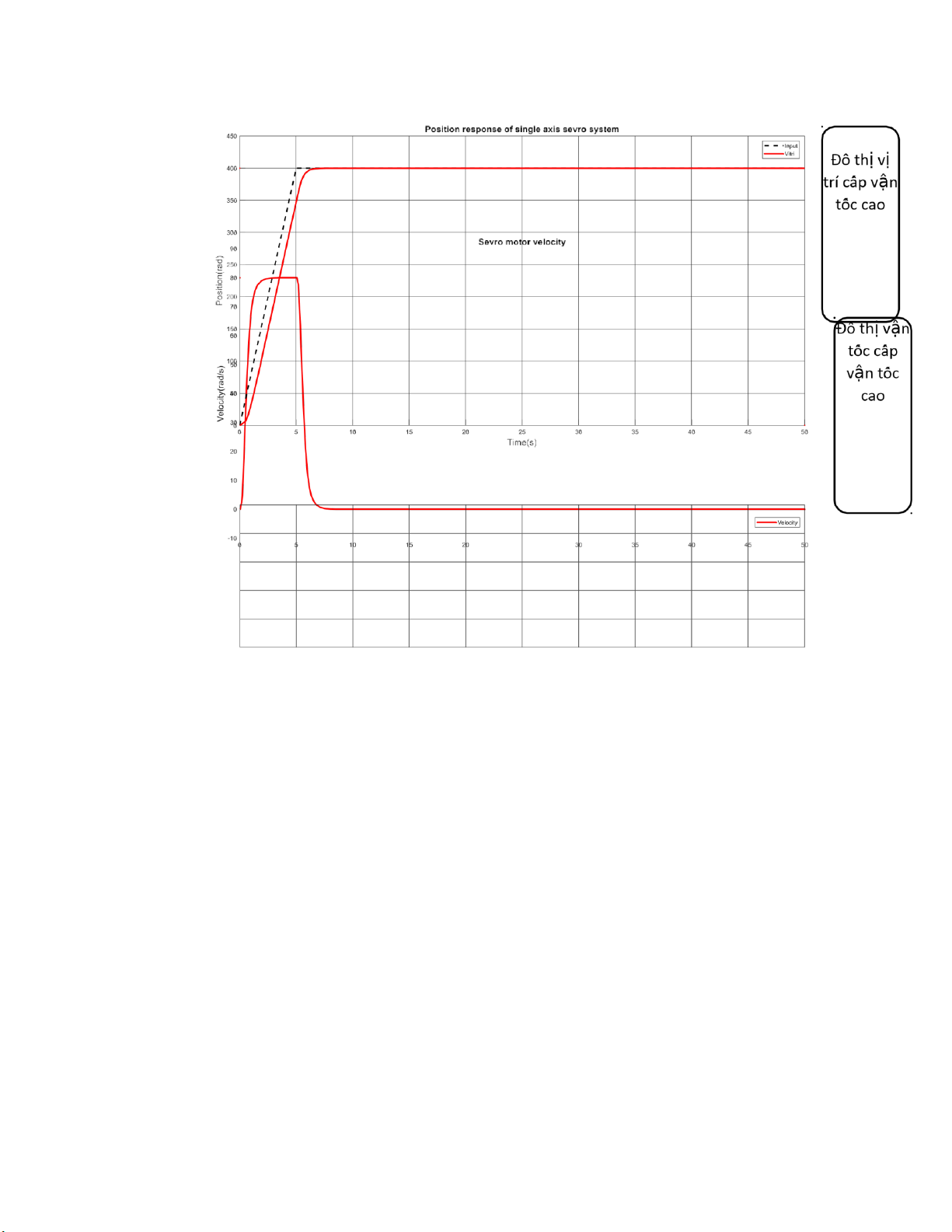 Để thể hiện rõ ràng các cấp vận tốc, chọn position là 400 rad để đồ thị thể hiện rõ