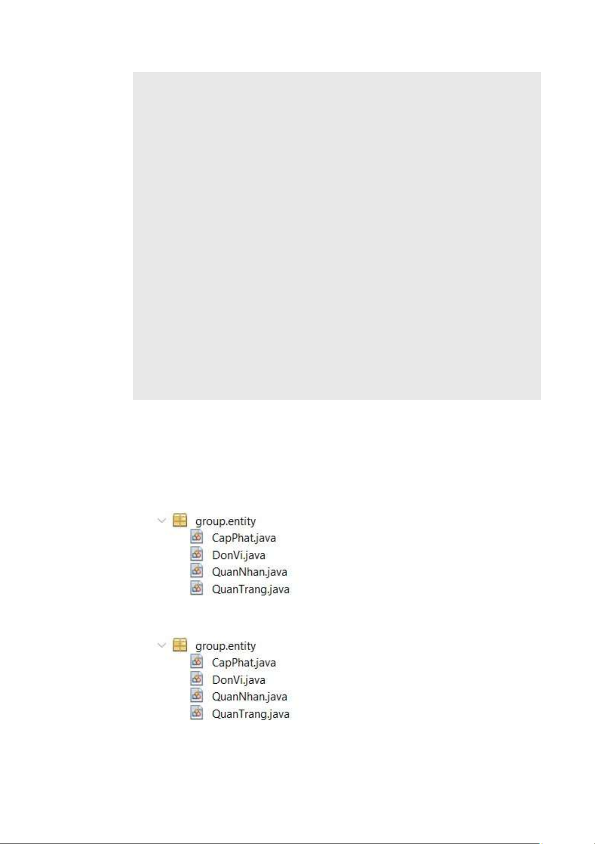 - Gói entity: Bao gồm các đối tượng của bài toán