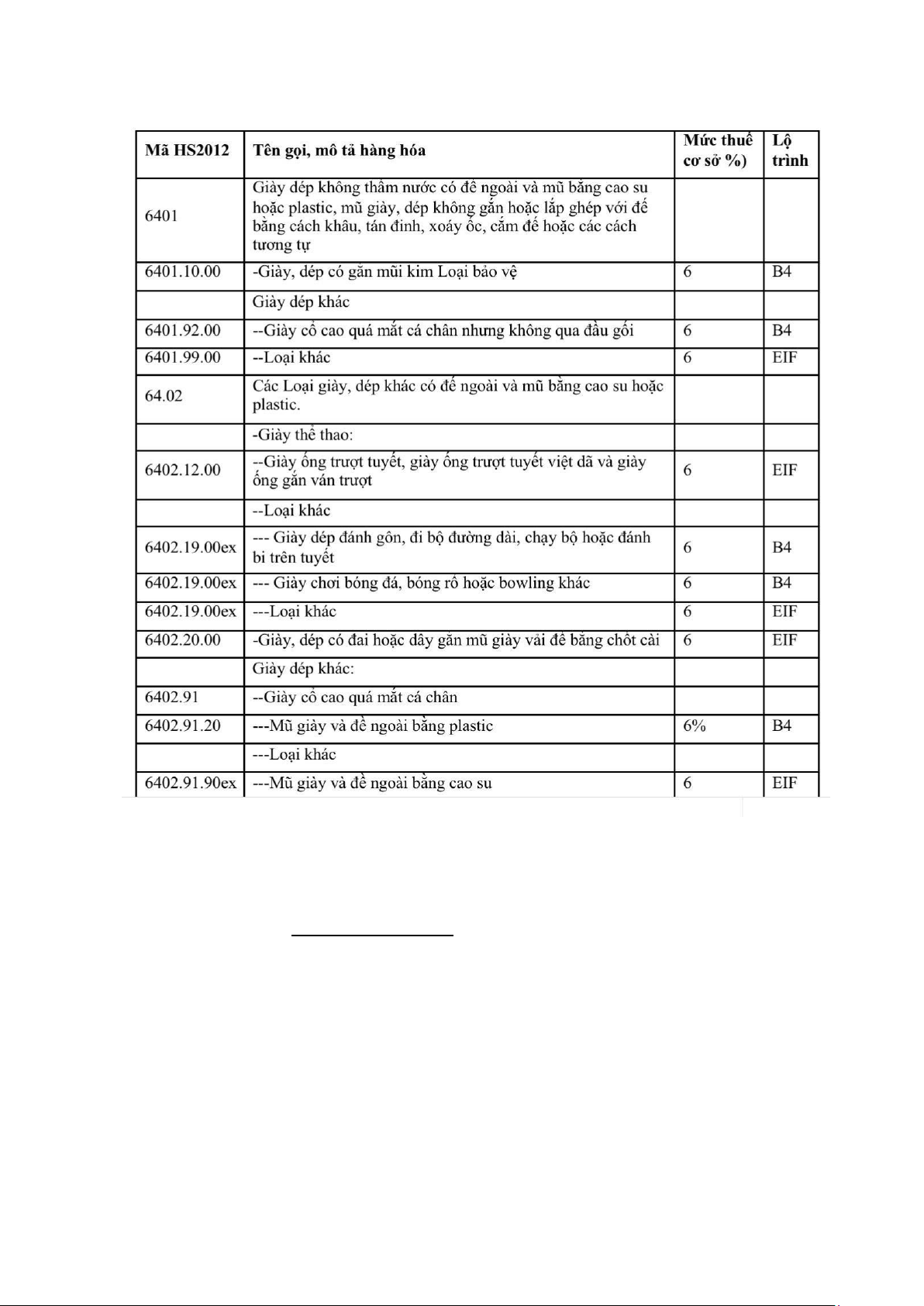 III. Nước ta cam kết cắt giảm và xóa bỏ thuế quan đối với các sản phẩm giày dép