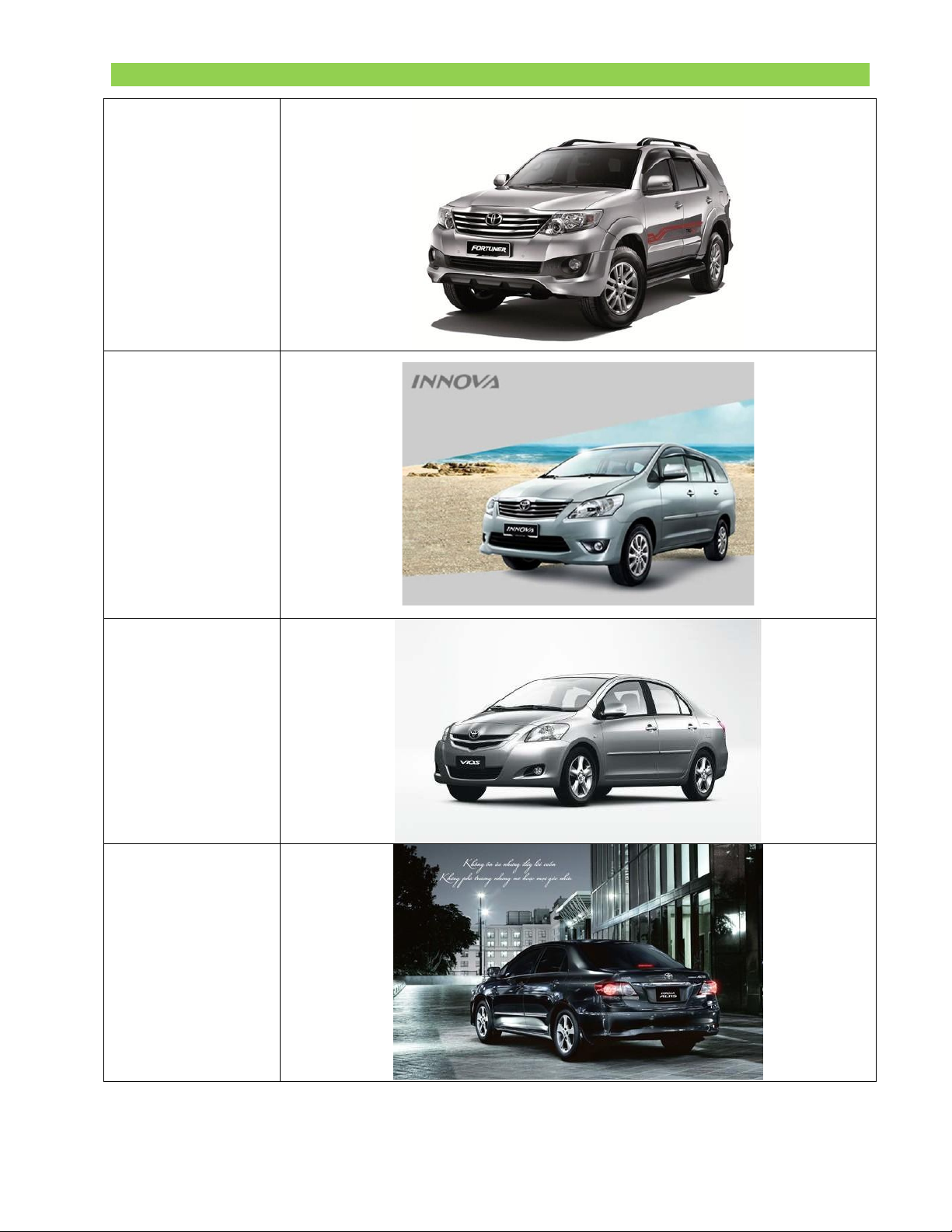 DỰ ÁN: SALON Ô TÔ ĐỖ GIA Fortuner 4x2 - AT Số tự động Innova G -AT Số tự độn Vios G -AT Số tự động Corolla Altis 2.0 CVT Số tự động 12