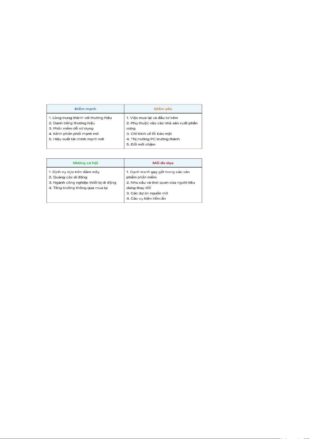 Tiếp thị kỹ thuật số: Microsoft đầu tư mạnh vào tiếp thị kỹ thuật số để tiếp cận khách hàng mục tiêu một cách hiệu quả. •  Tận dụng mô hình SWOT    * Điểm mạnh