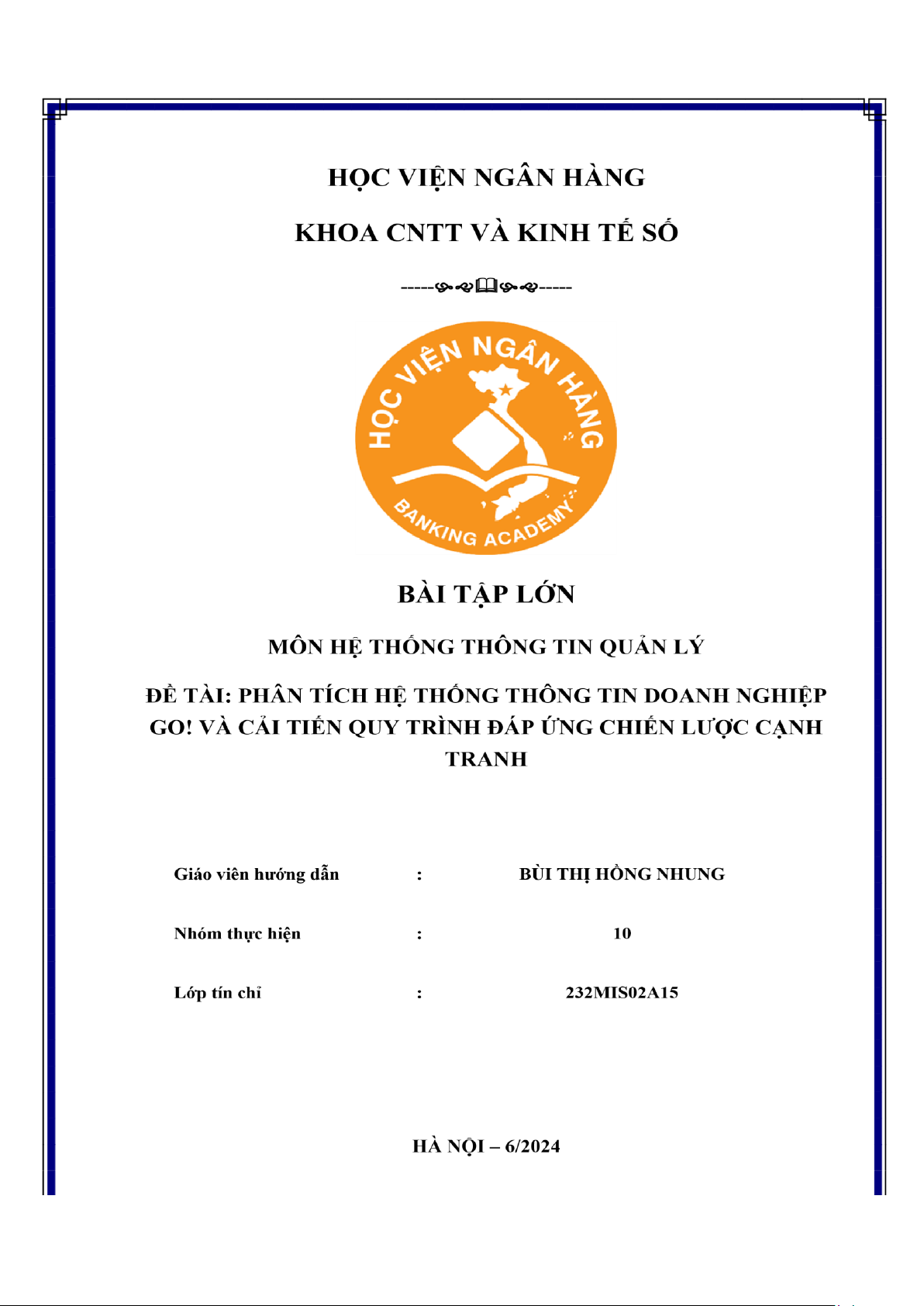 lý về đề tài "Phân tích hệ thống thông tin doanh nghiệp GO! Và cải tiến quy trình đáp