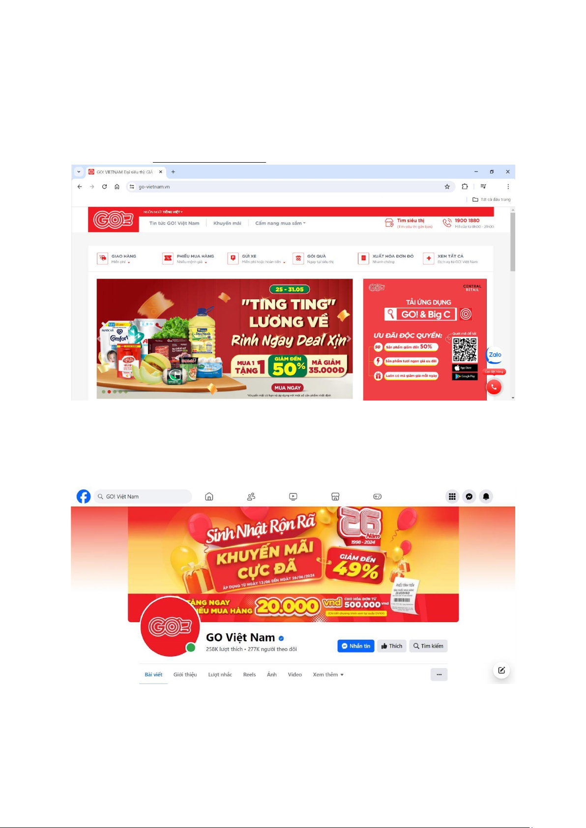 - Fanpage: GO! cũng có mặt trên các nền tảng mạng xã hội như Facebook, nơi