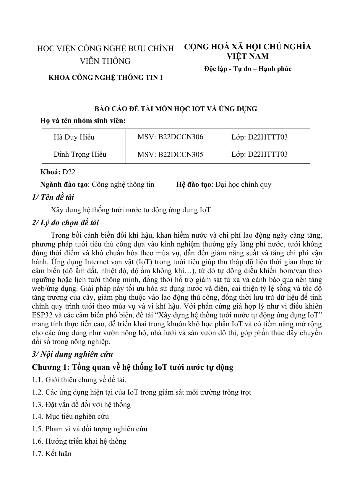 Họ và tên nhóm sinh viên: Hà Duy Hiếu MSV: B22DCCN306 Lớp: D22HTTT03 Đinh Trọng Hiếu MSV: B22DCCN305 Lớp: D22HTTT03 Khoá: D22 Ngành đà