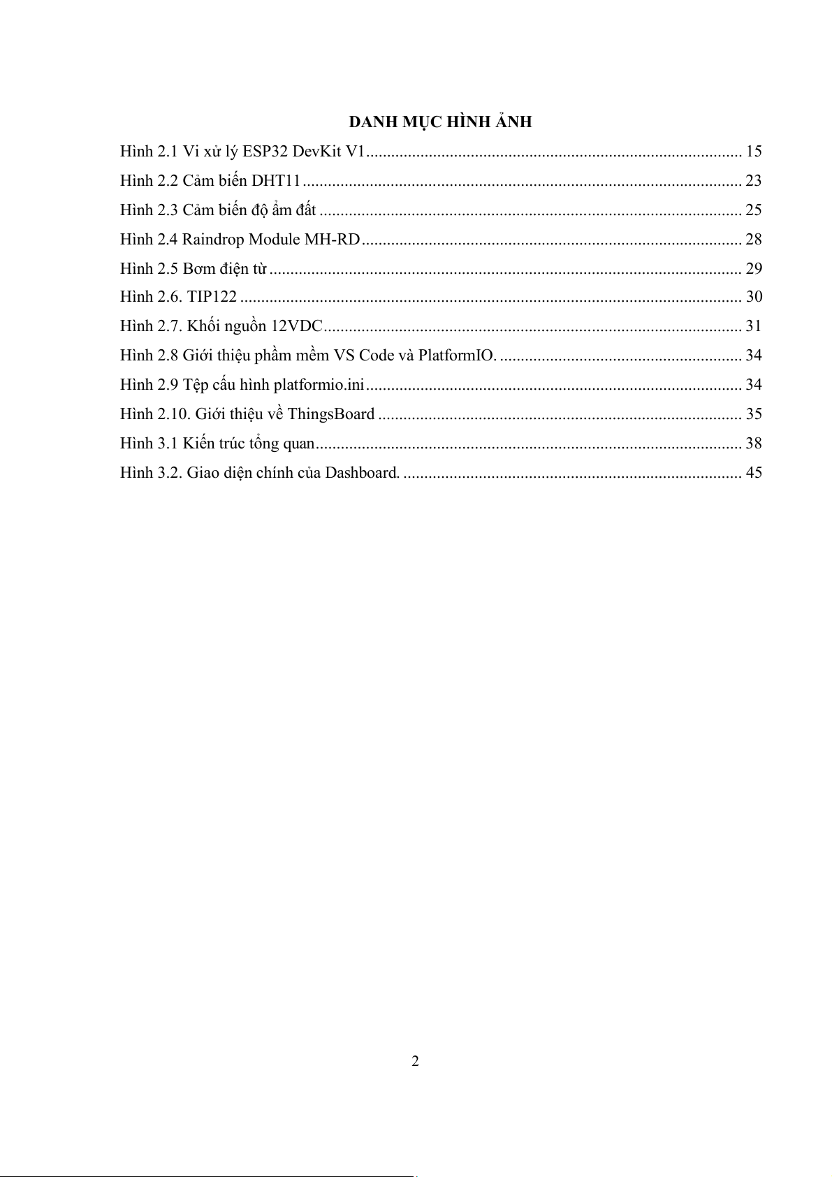 + Cảm biến độ ẩm đất + Cảm biến mưa − Ngoại vi 2.2. Phần mềm − ThingsBoard − VS Code - PlatformIO