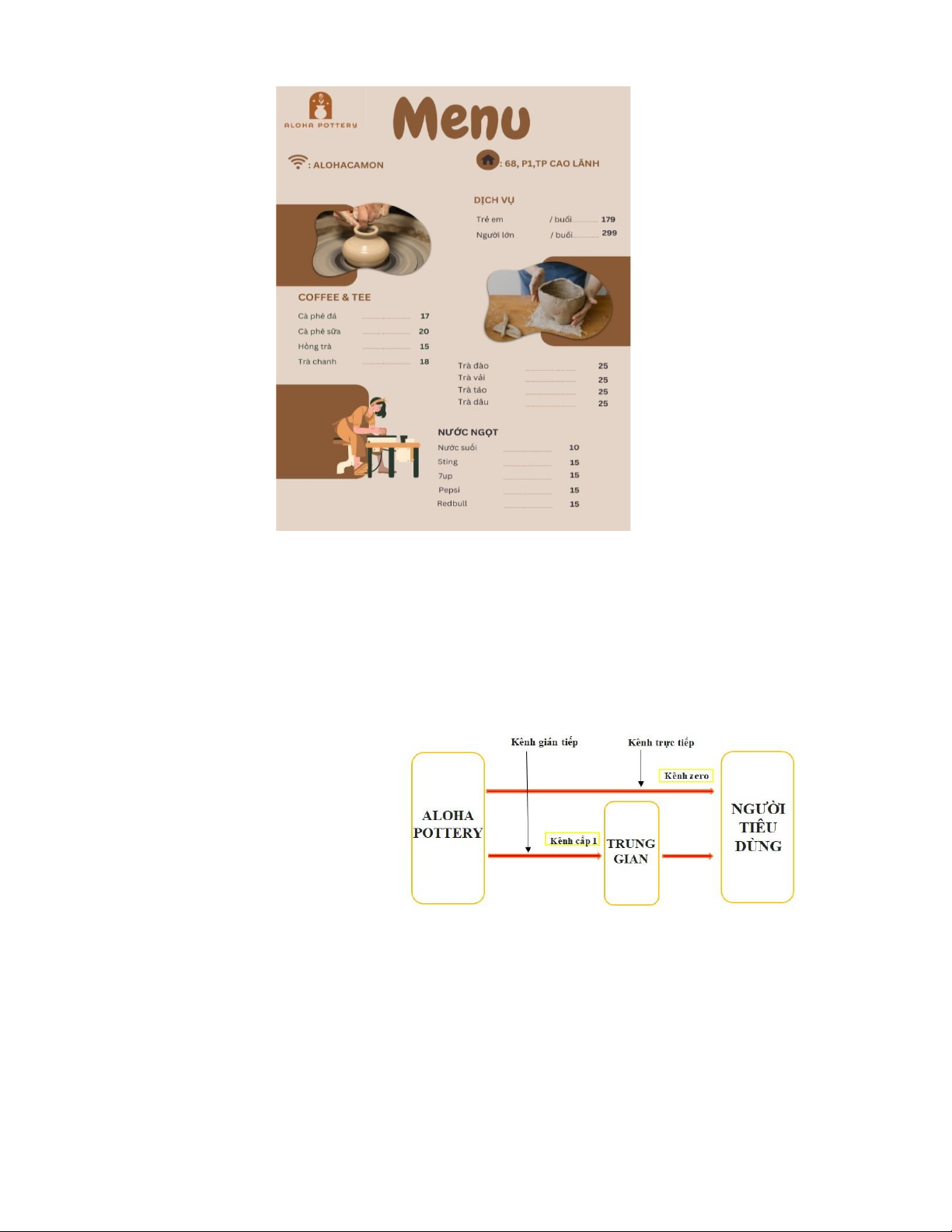 Ta có sơ ồ bố trí mặt bằng dịch vụ trải nghiệm làm gốm Aloha như sau: