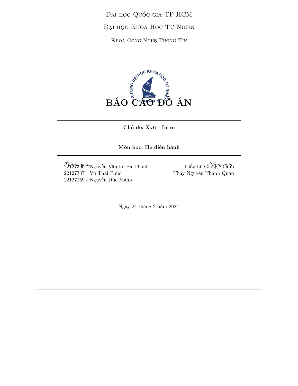 Báo cáo Đồ án Hệ Điều Hành: Xv6 Lab 1 - Cấu Trúc và Thực Hành