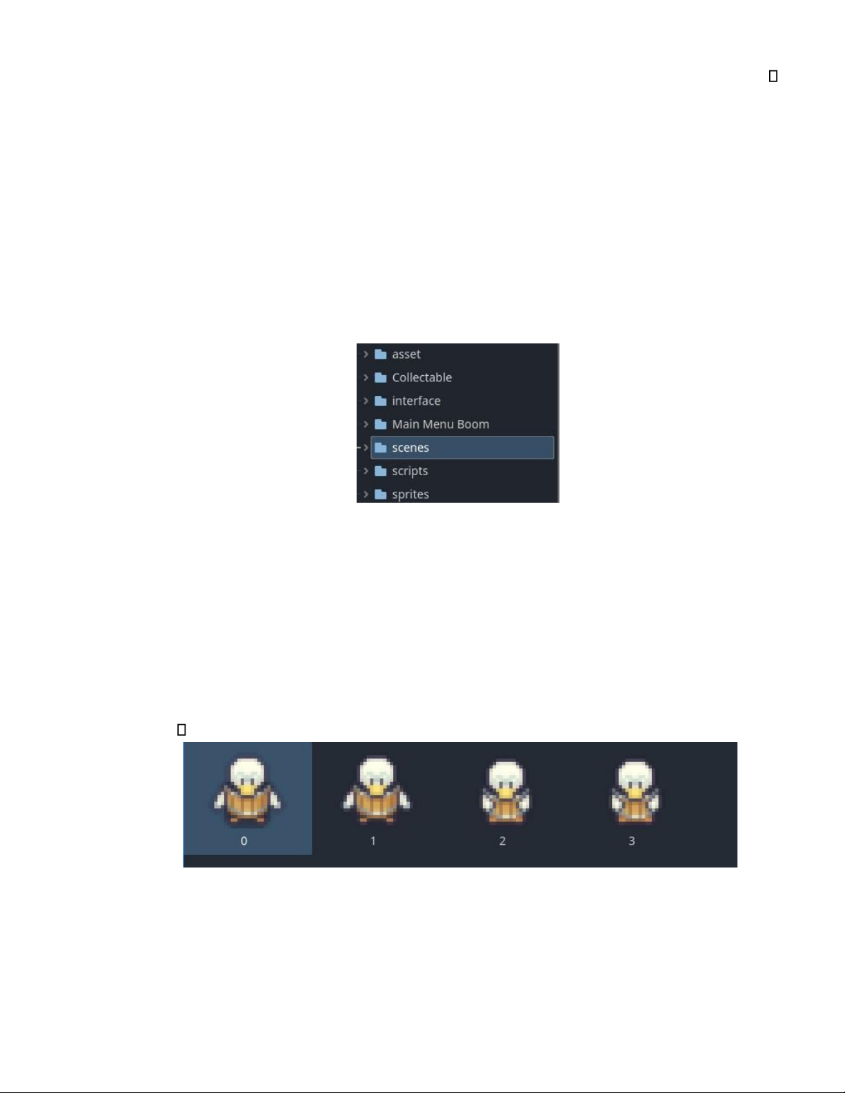 • Ở thư mục scenes chứa các tệp có đuôi .tscn dùng để lập trình Front-end của game, thiết lập