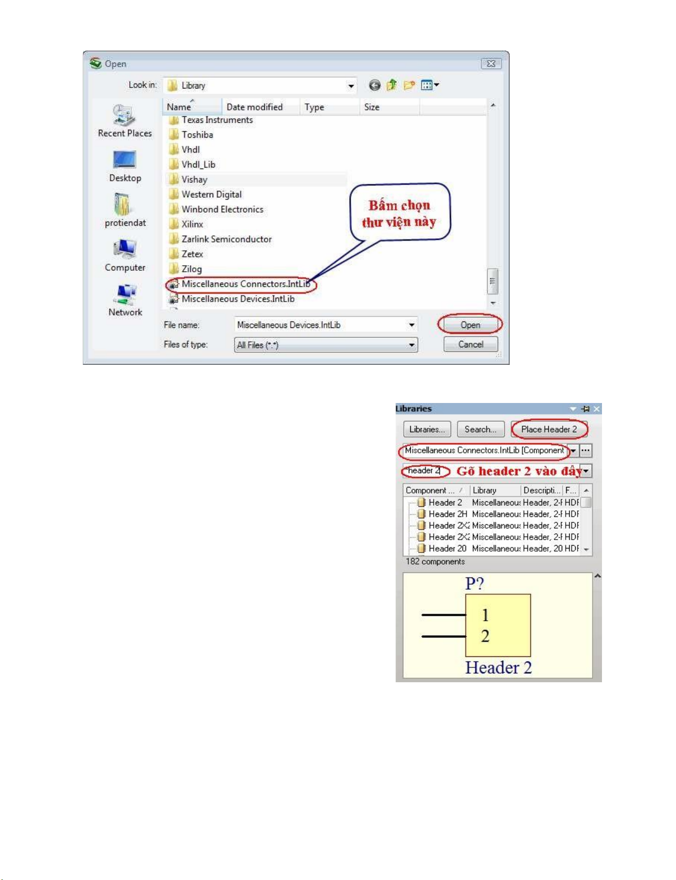 tại là Miscellaneous Connectors.IntLib, gõ Header