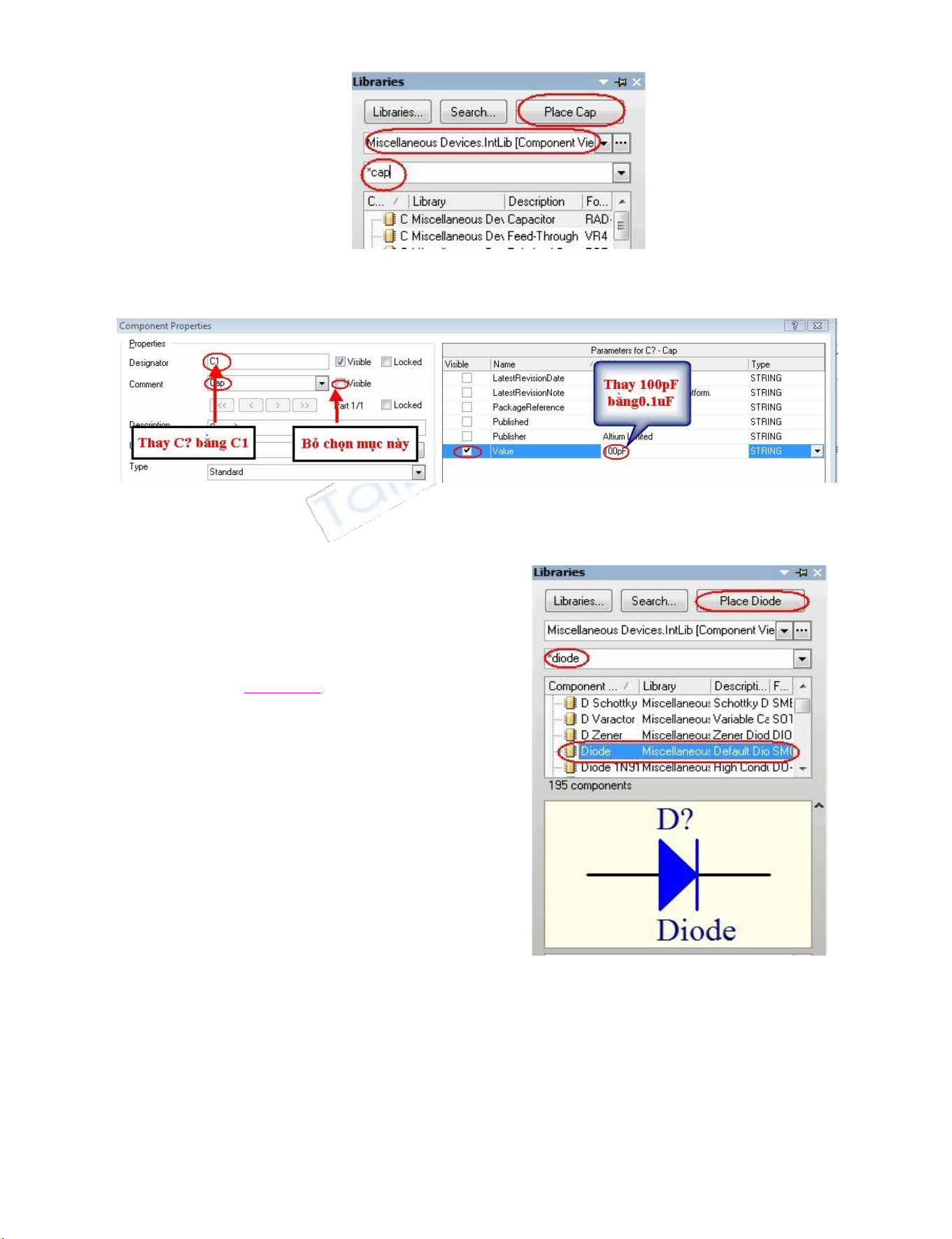 Devices.IntLib ta gõ Cap và bấm chuột vào Place Cap, và trước khi đặt tụ điện này vào