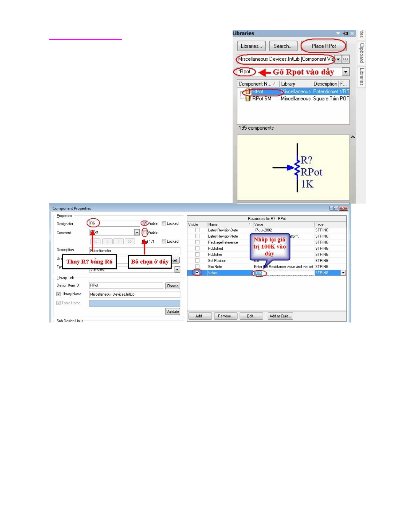 là D1 thay vì D? tại hộp thoại Ấn phím Tab để hiện hộp thoại Component Properties như phần