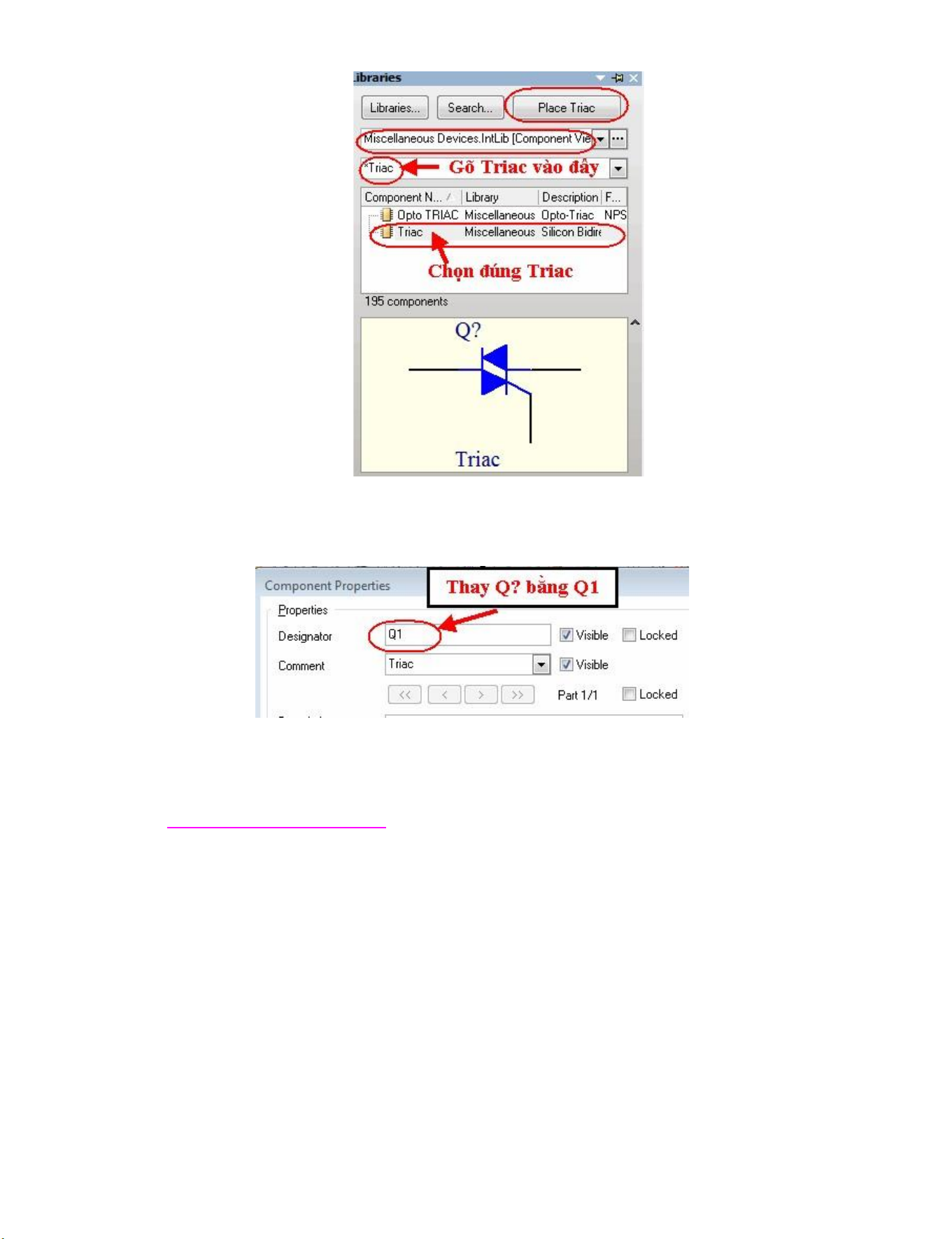 Tiếp theo, để lấy Triac, vẫn tại thư viện Miscellaneous Devices.IntLib ta gõ Triac vào khung tên linh kiện: