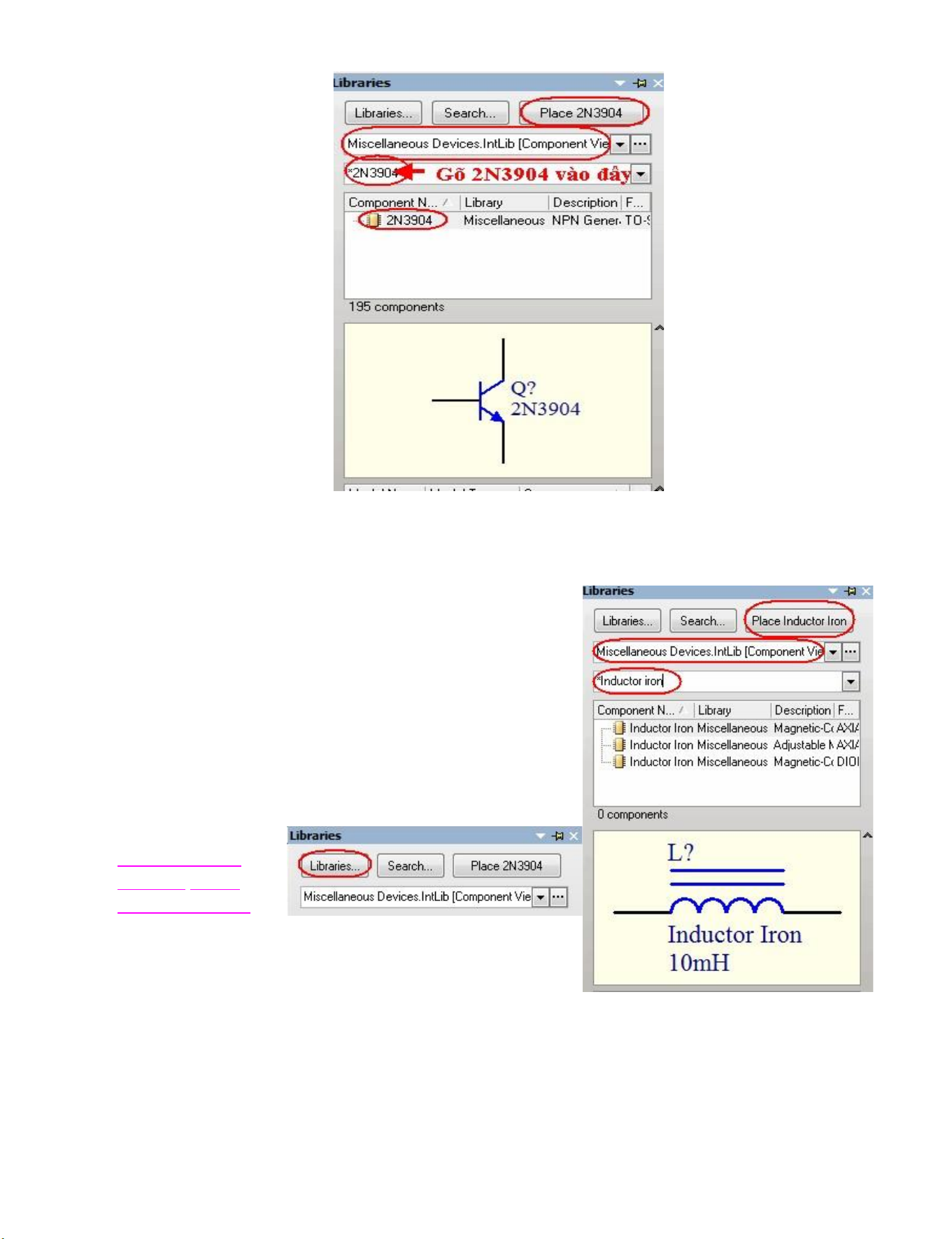 Libraries. Ấn Place Inductor Iron để đặt cuộn dây vào