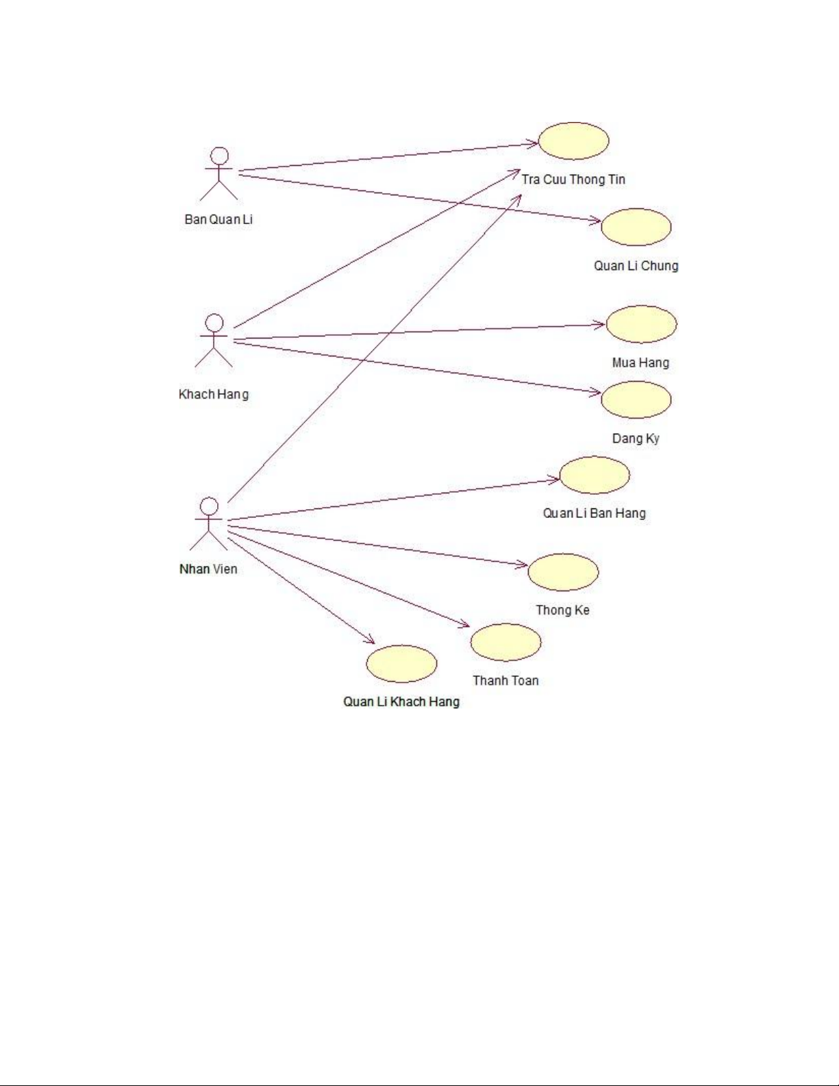 o Thanh toán: Trực tiếp tiền mặt, chuyển khoản, tài khoản ngân lượng.. • Nhân Viên o Quản lí hàng o Quản lí khách