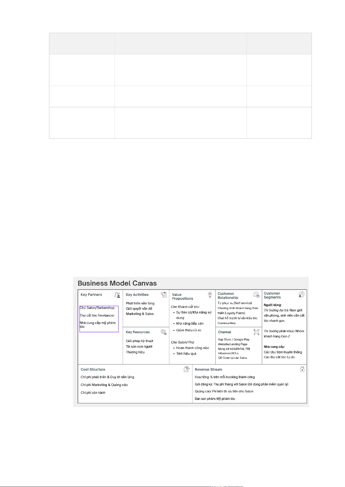 Key Partners: Tiệm barber, KOL barber