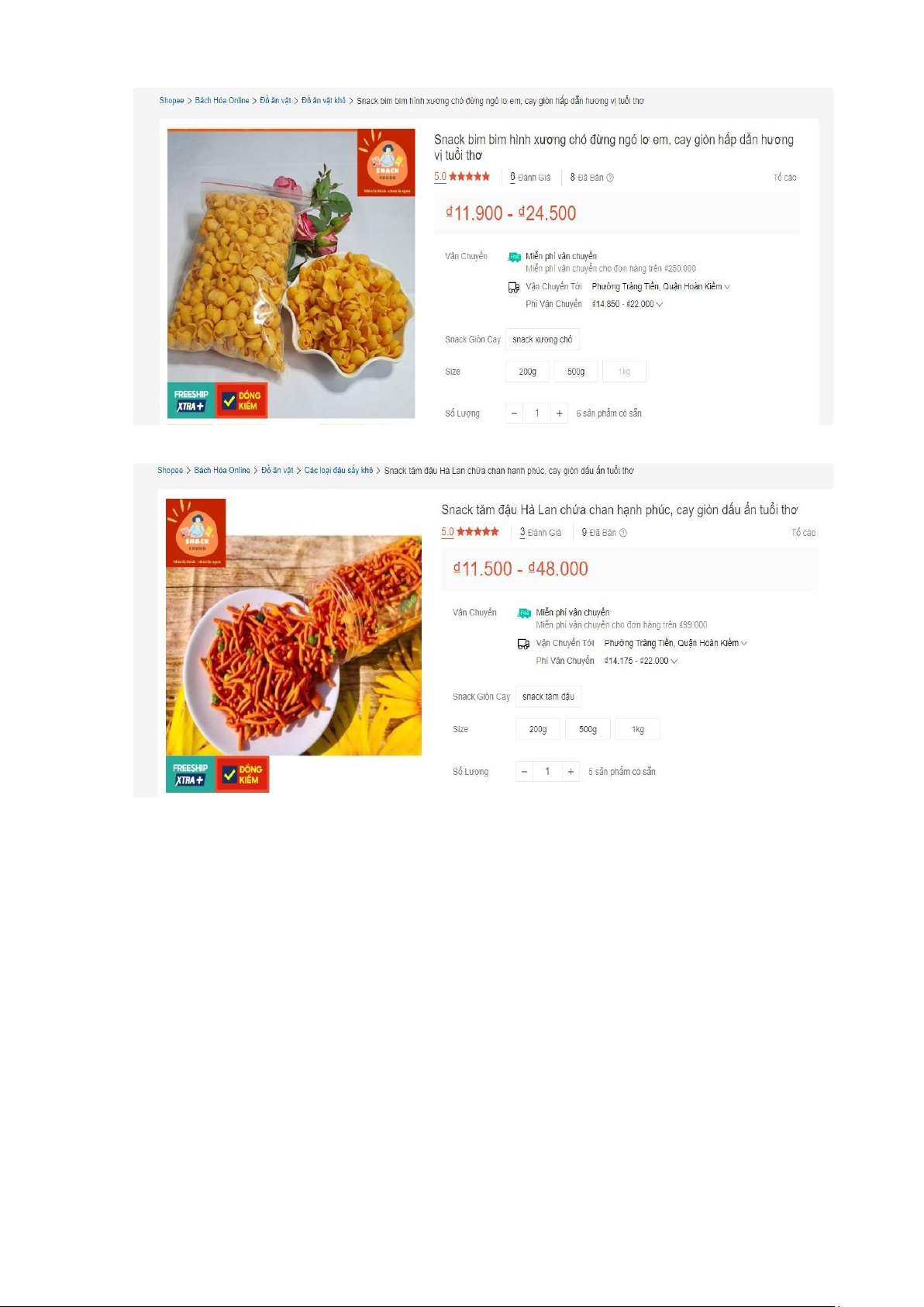 2.2 Tên Shop trên các sàn thương mại điện tử Tên shop: Snack Favor Shop