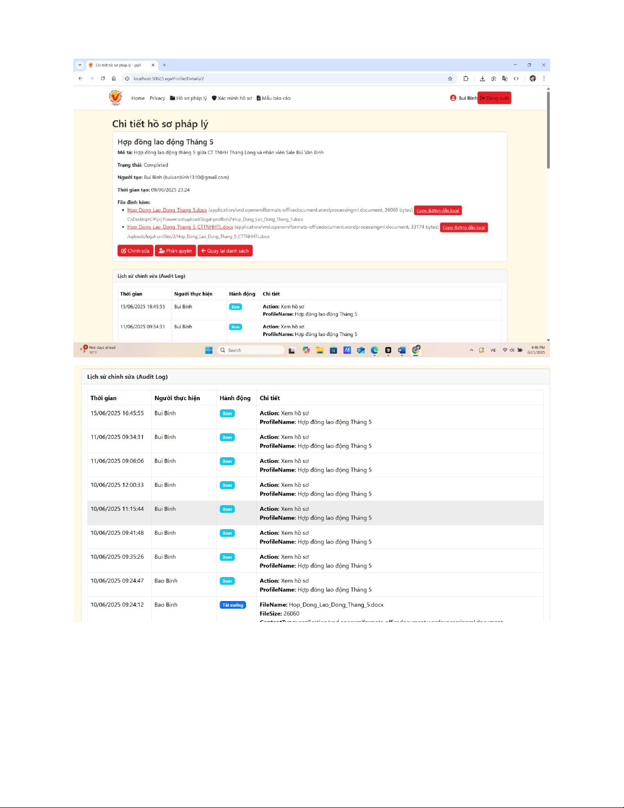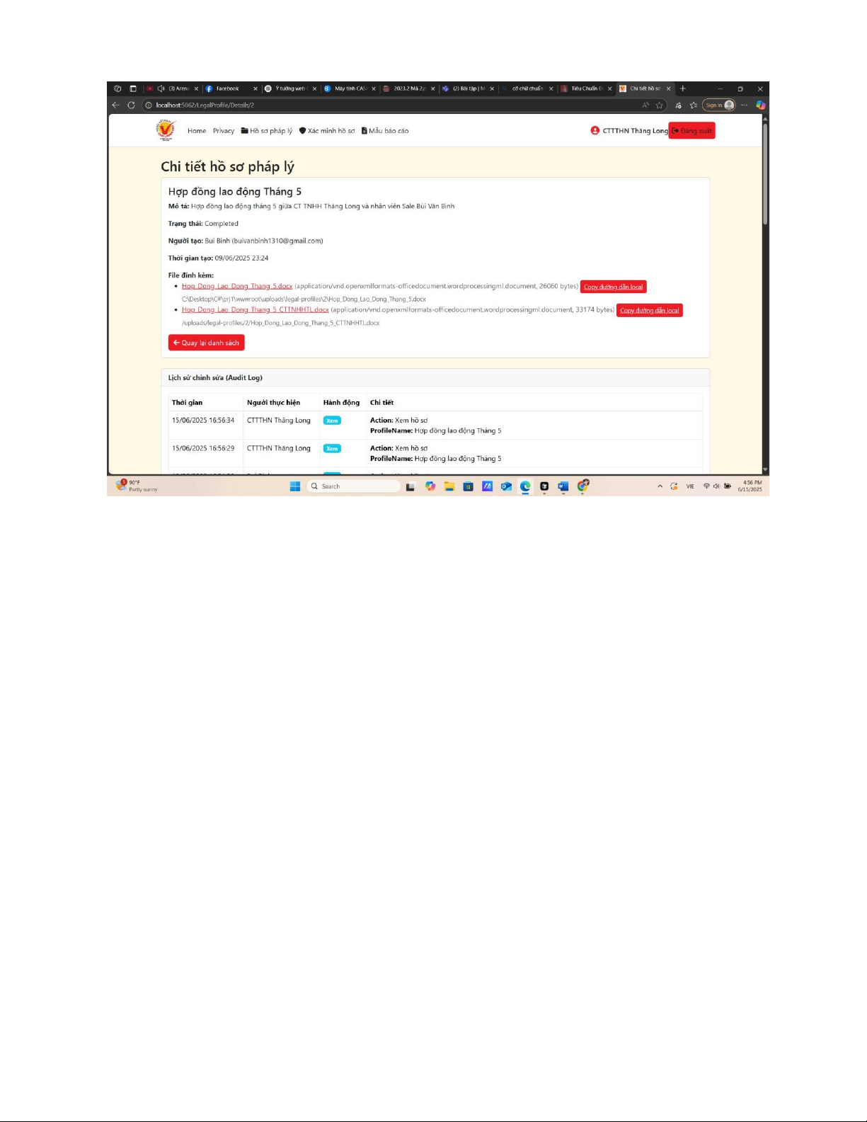 5. Đây là trang xem chi tiết và lịch sử của người dùng đã xem, tải, chỉnh sủa hồ sơ
