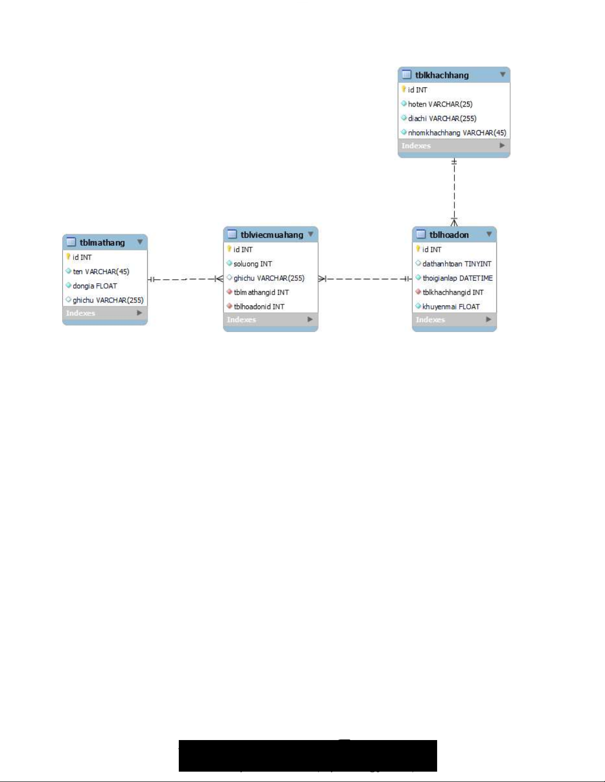- 1 tblhoadon – n tblviecmuahang: bảng tblviecmuahang có khóa ngoại tblhoadonid;