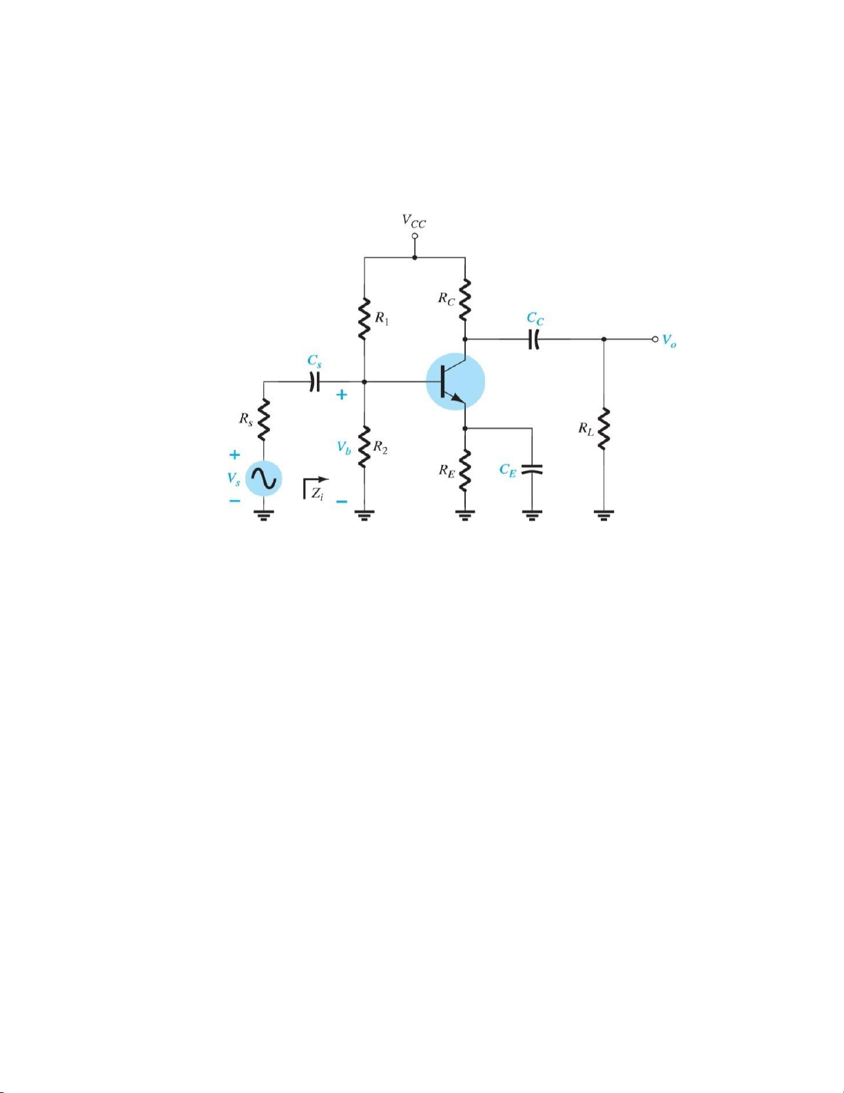 The capacitors 𝐶𝑆, 𝐶𝐶 , and 𝐶𝐸 will determine the low-frequency response following the