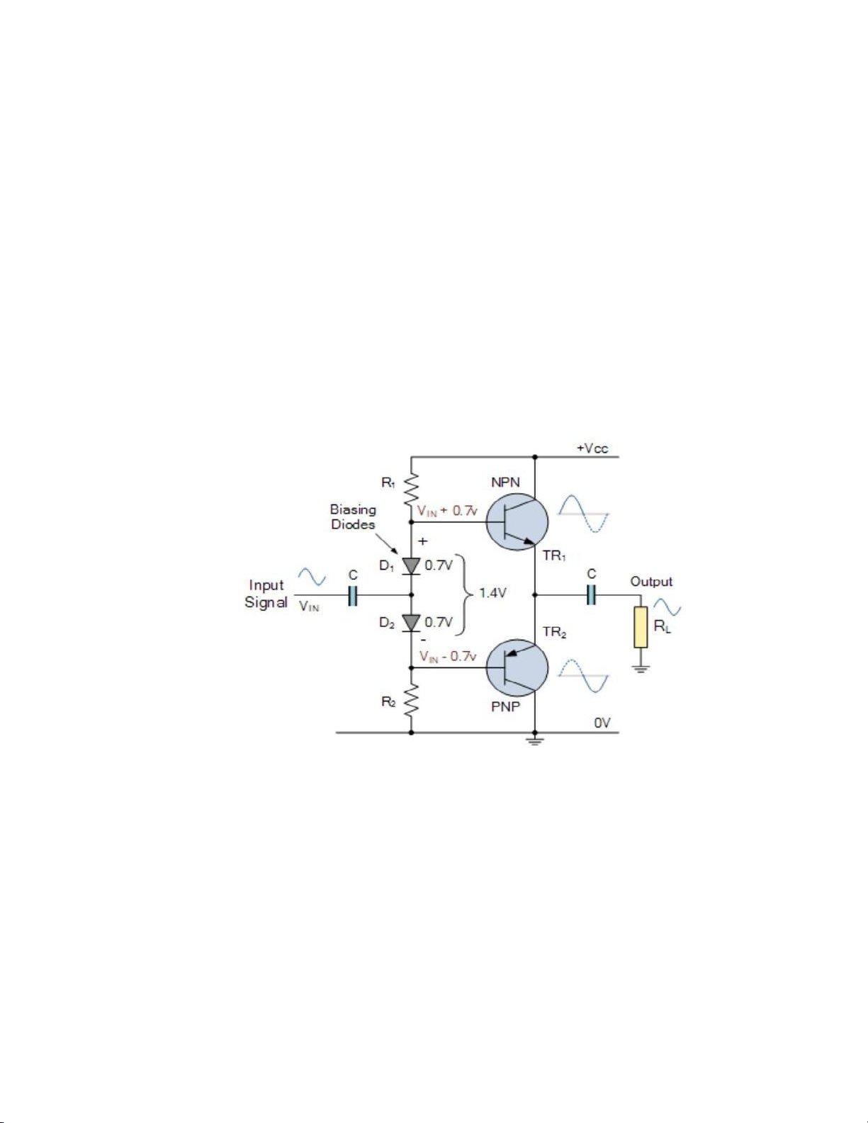 small quiescent current to flow that minimizes crossover distortion producing a true Class AB amplifier operation