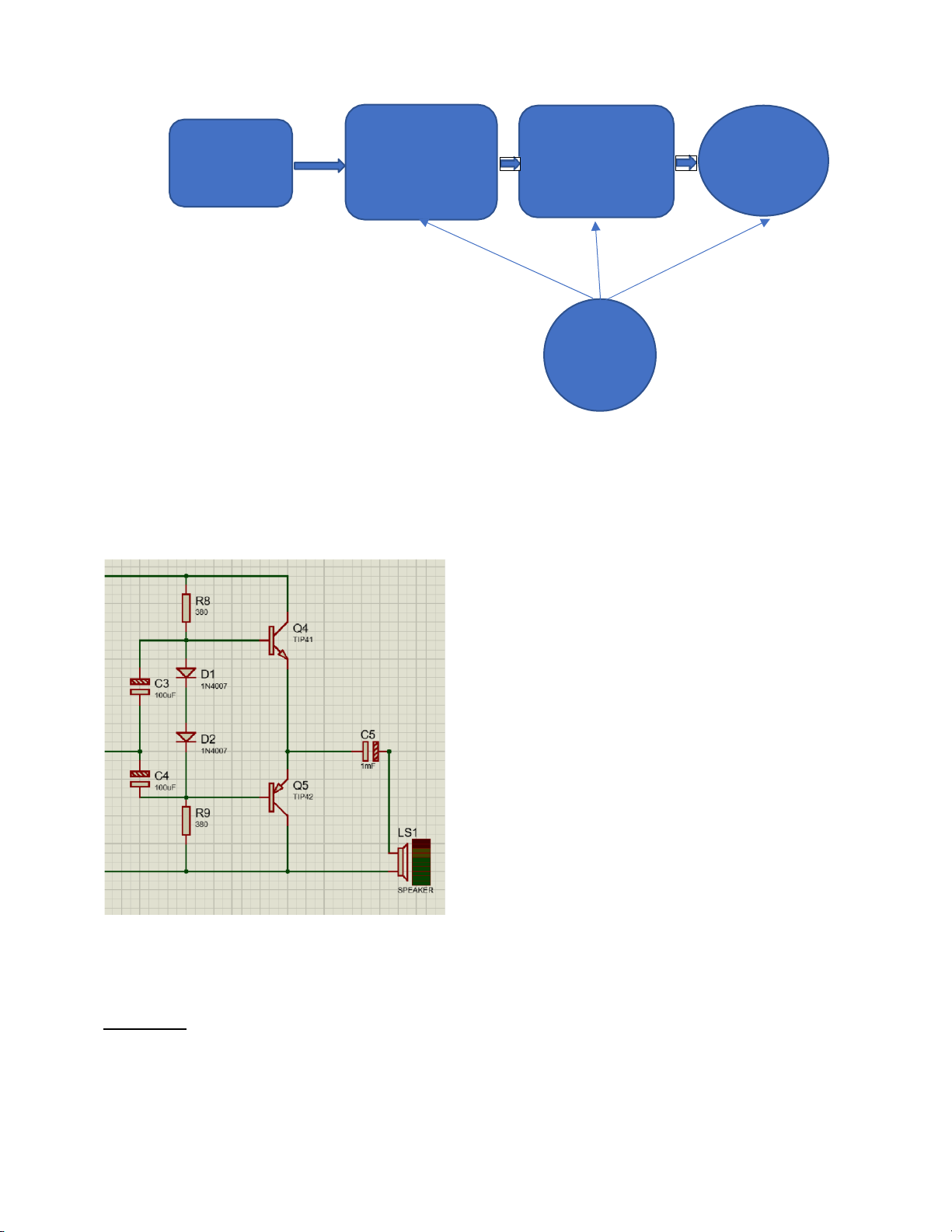 Speaker or Load. In these parts, the Amplifier includes 2 blocks are Voltage amplifier and Power amplifier. AC signal Voltage Power source amplifier amplifier Speaker Power source 2.3Power amplifier Fig2.4 Power amplifier DC Mode