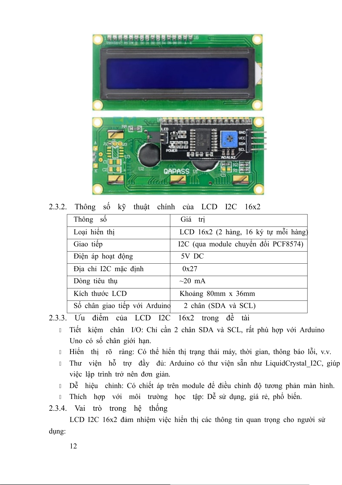 2.3.2. Thông số kỹ thuật chính của LCD I2C 16x2........................13