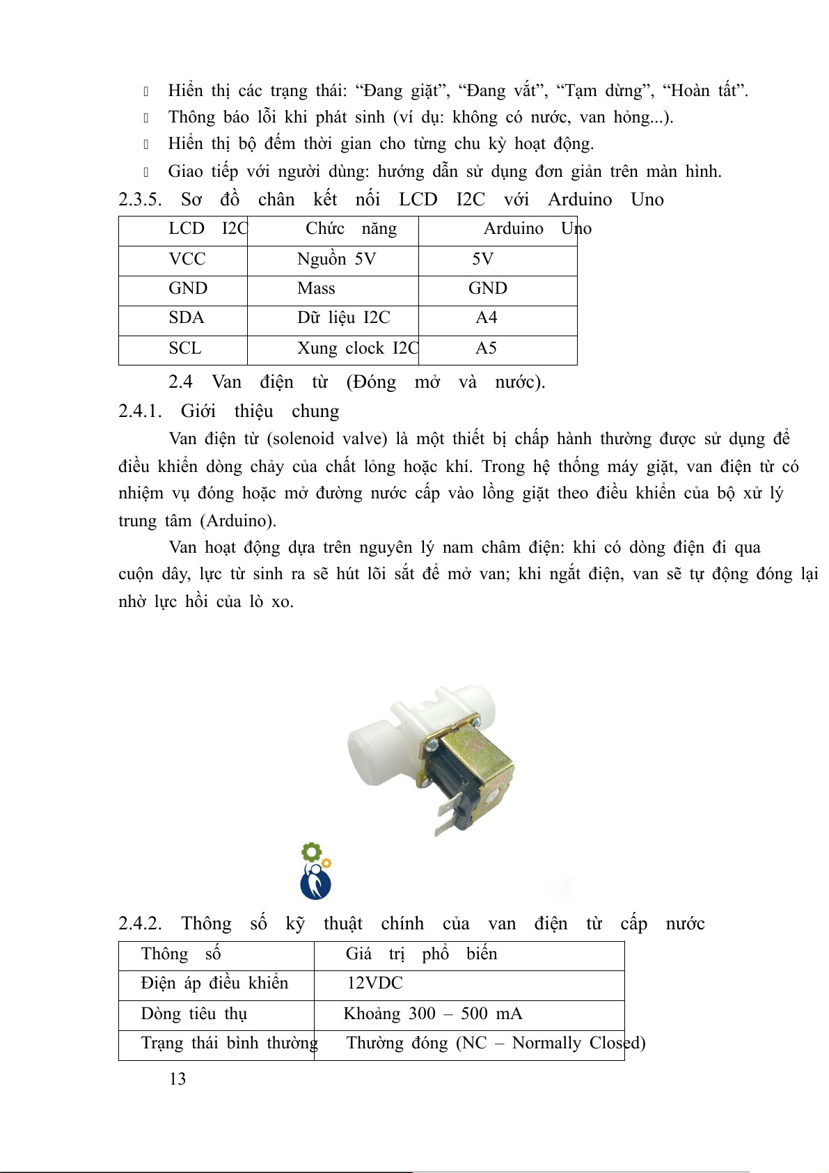 2.4.2. Thông số kỹ thuật chính của van điện từ cấp nước...............15