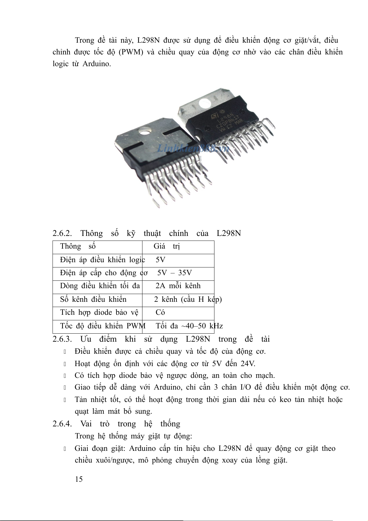 2.6.2. Thông số kỹ thuật chính của L298N.....................................16