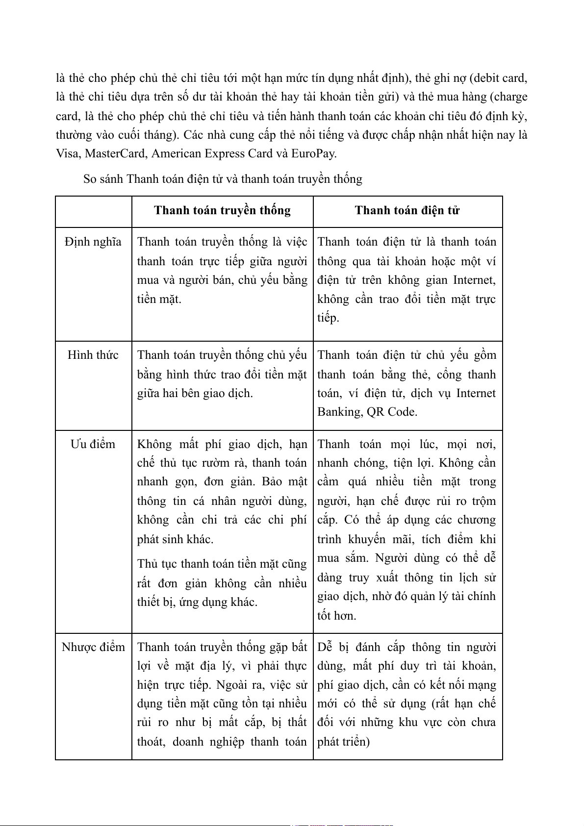 Thanh toán truyền thống là việc Thanh toán điện tử là thanh toán